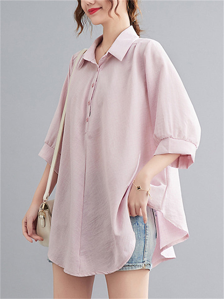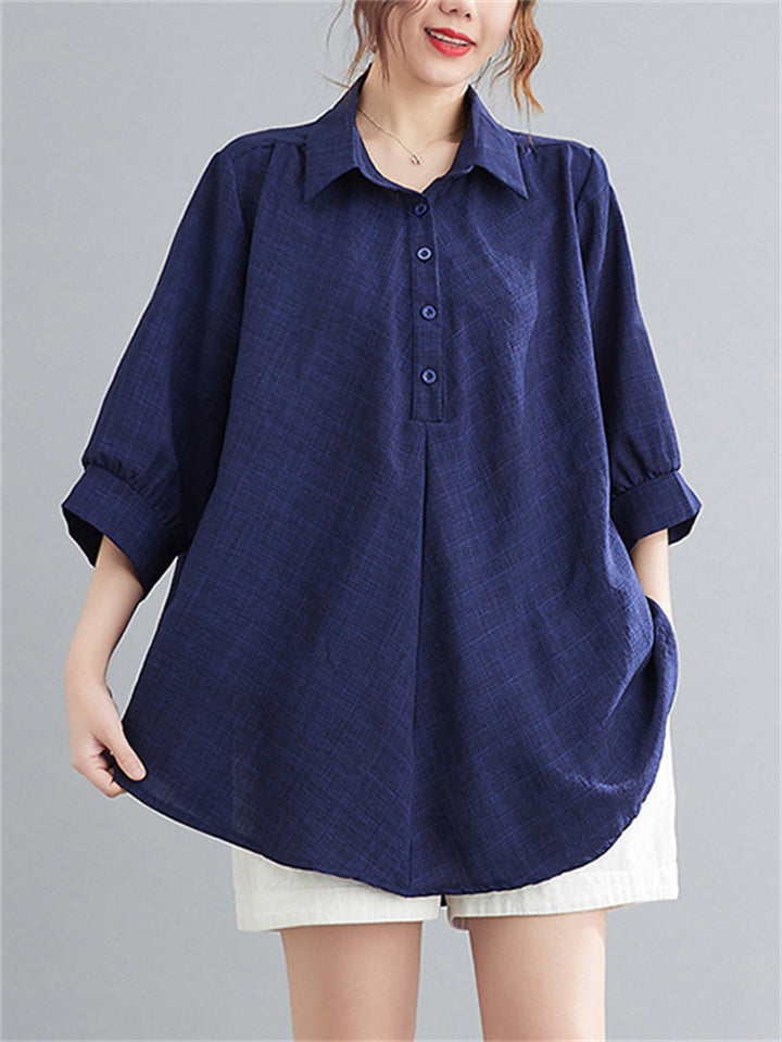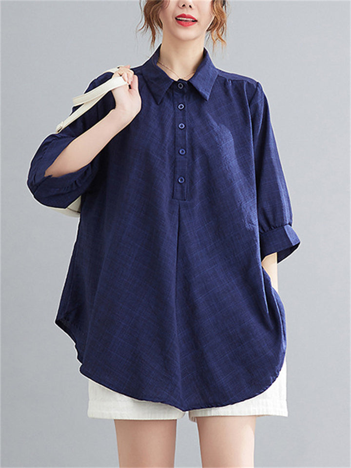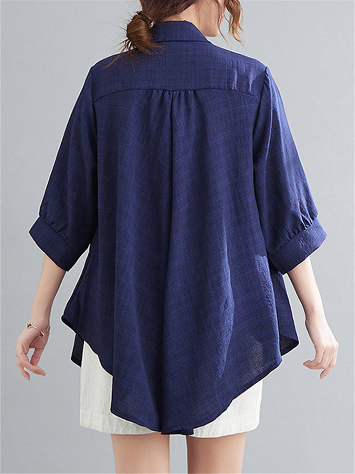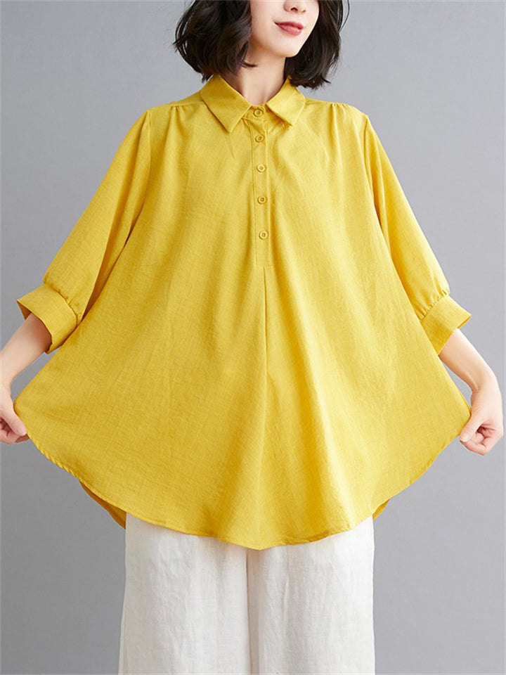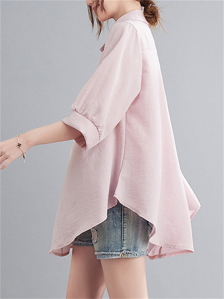 Women's Casual Solid Color 3/4 Sleeve Button Up Lapel Long Shirts
