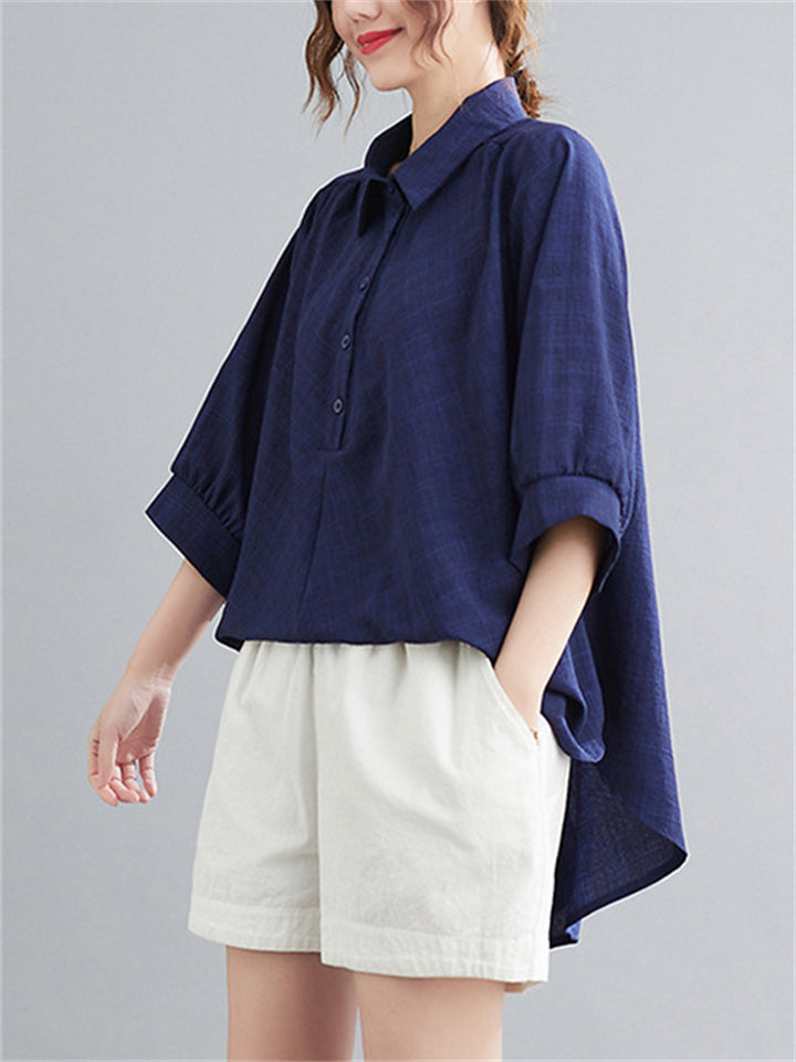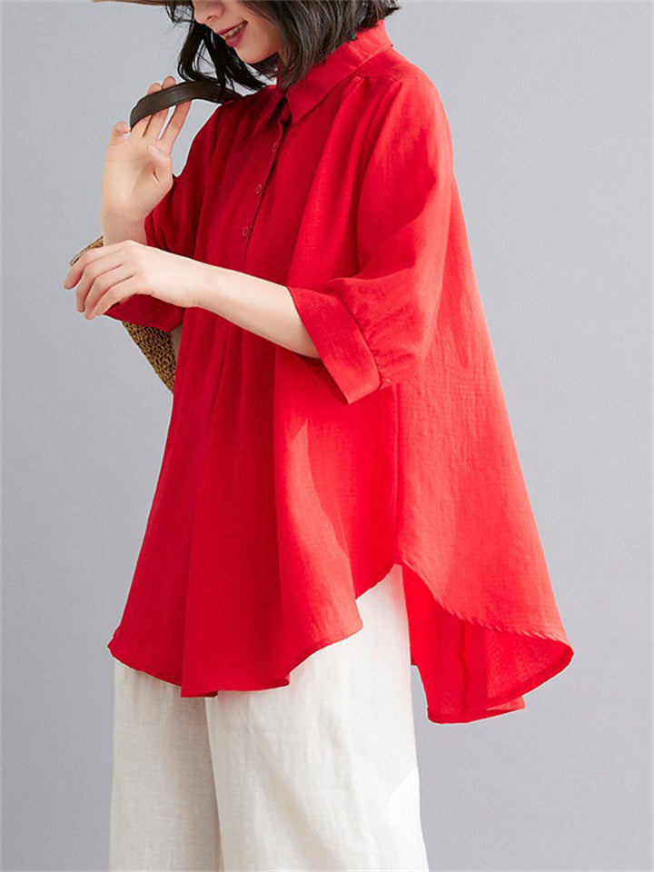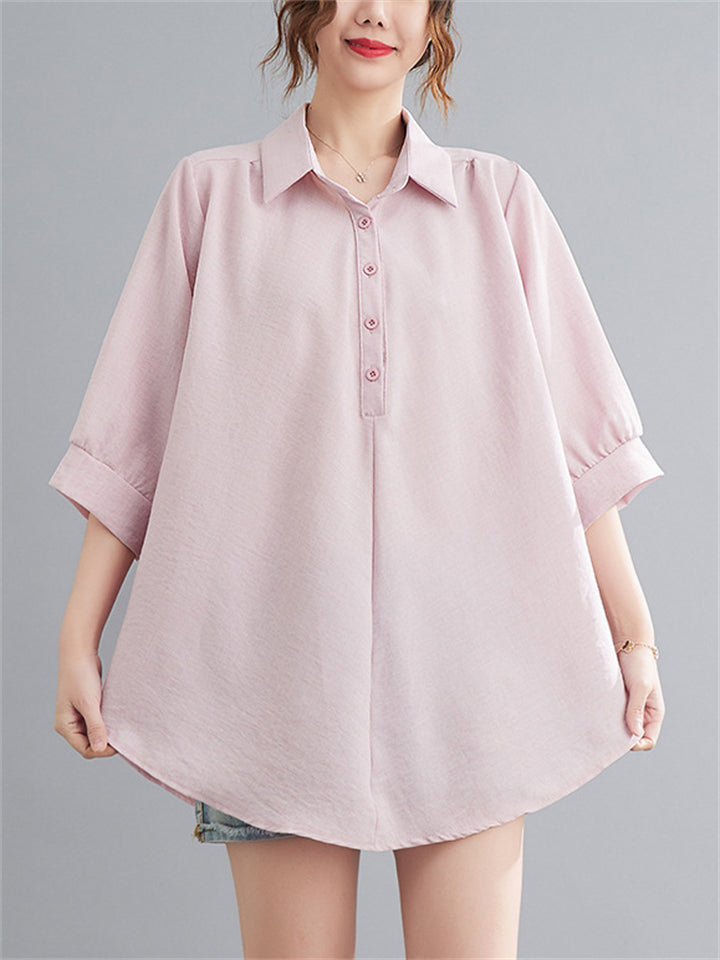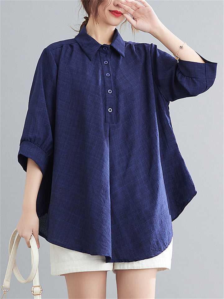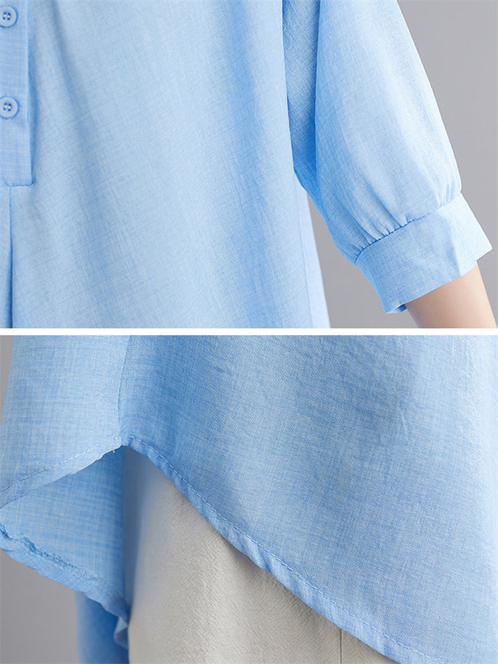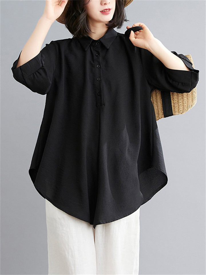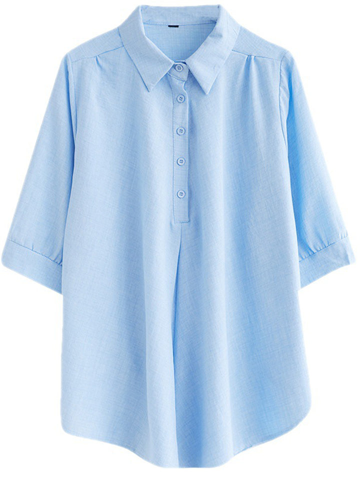 Women's Casual Solid Color 3/4 Sleeve Button Up Lapel Long Shirts