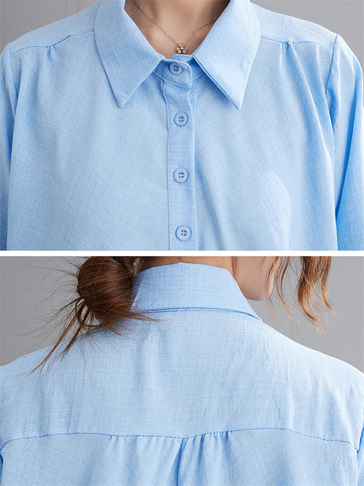 Natural Linen Solid Color Cozy Loose Shirt for Women
