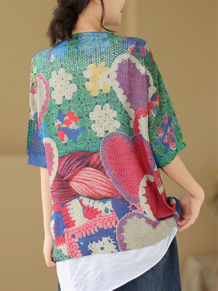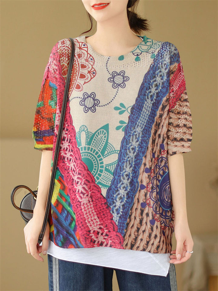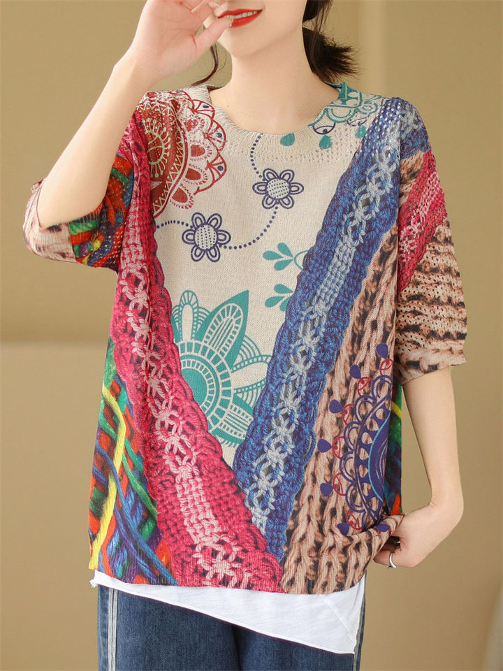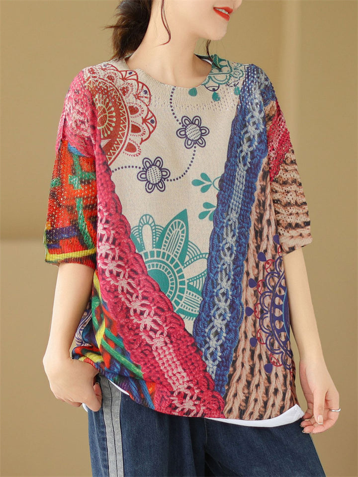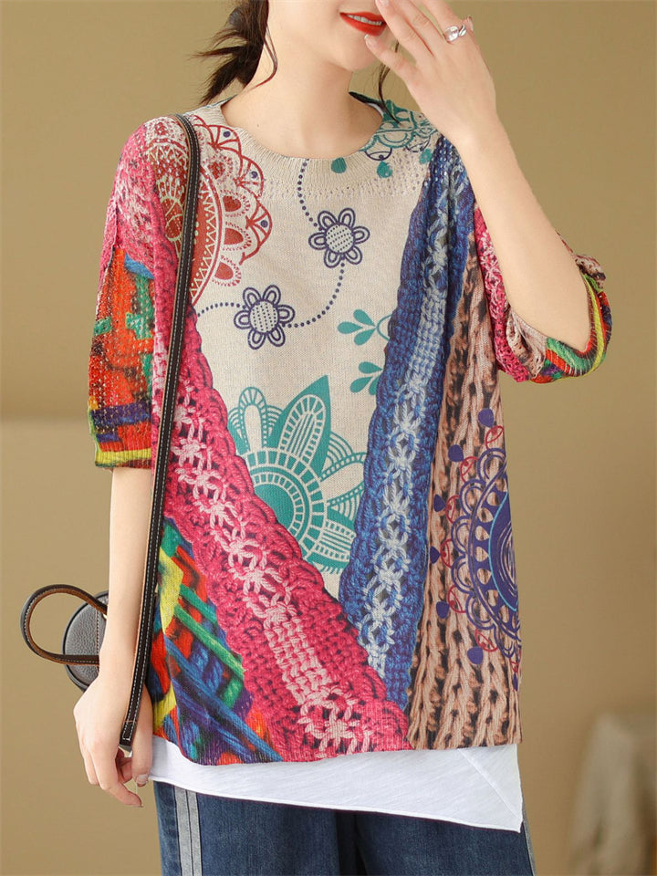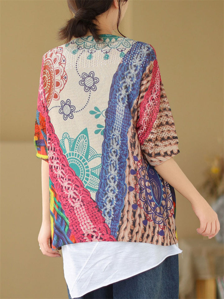 Summer Bohemian Style V Neck Print Vacation Shirt for Women