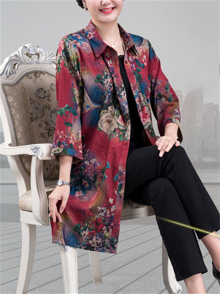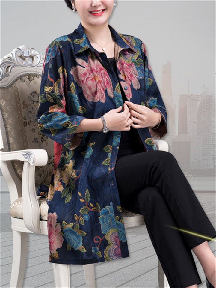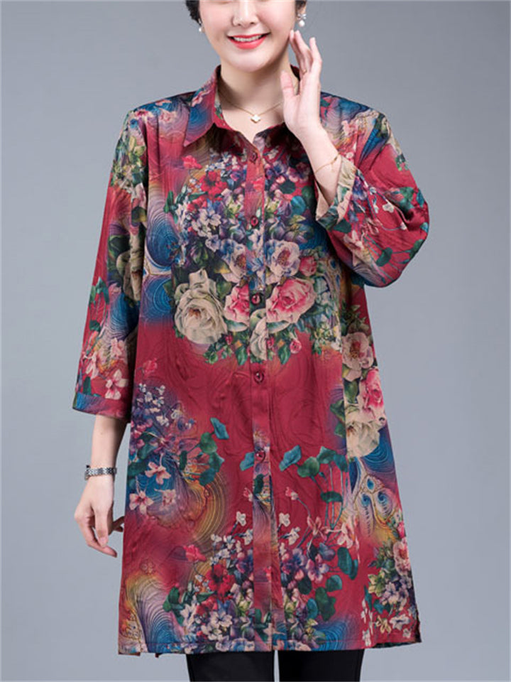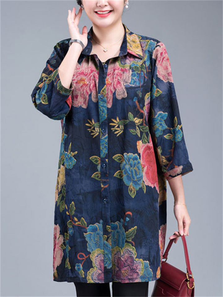 Women's Casual Retro Printed Long Sleeve Lapel Shirts