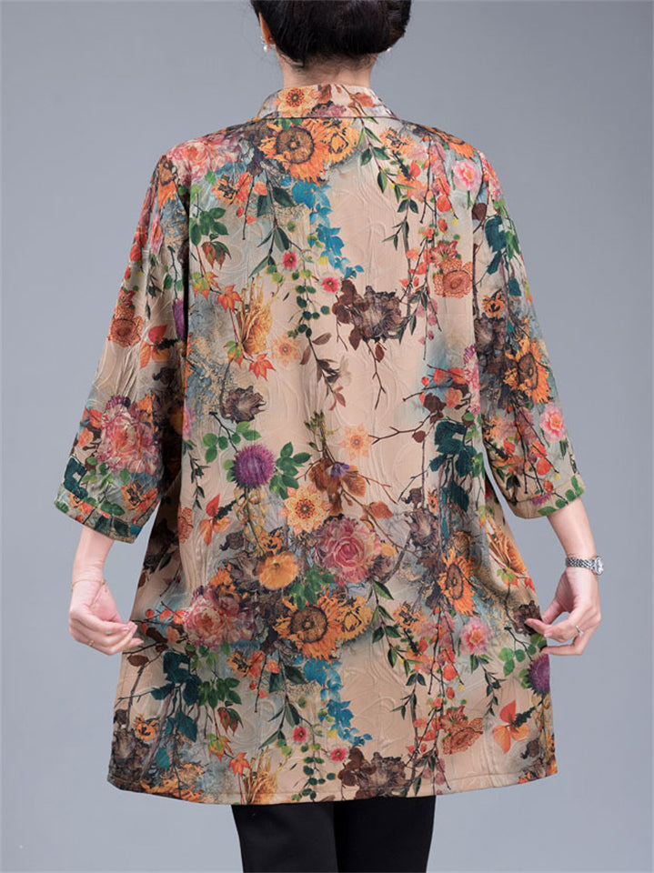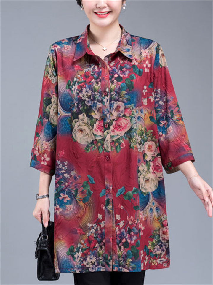 Plus Size Summer Floral Print 3/4 Sleeve Shirt for Women