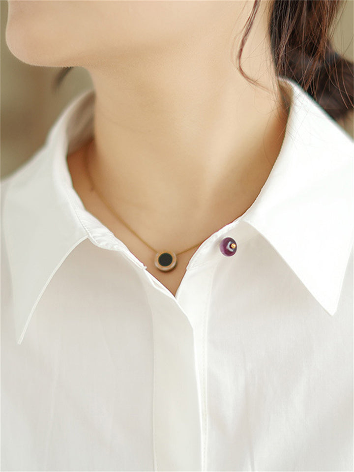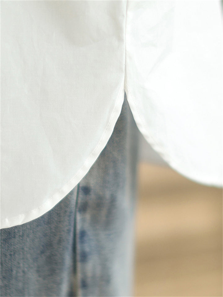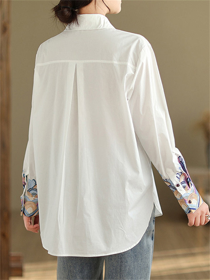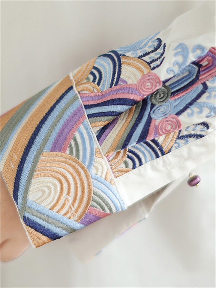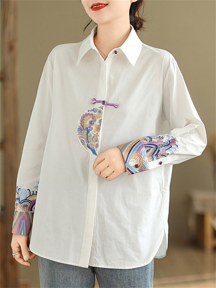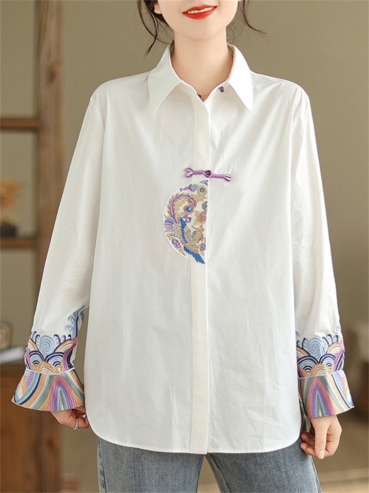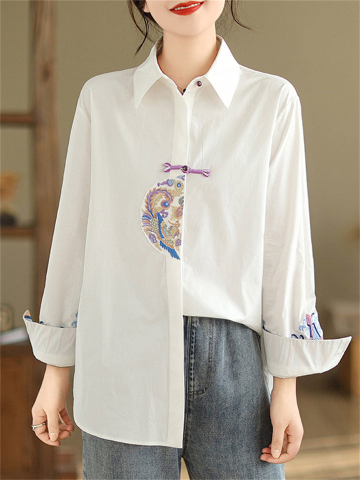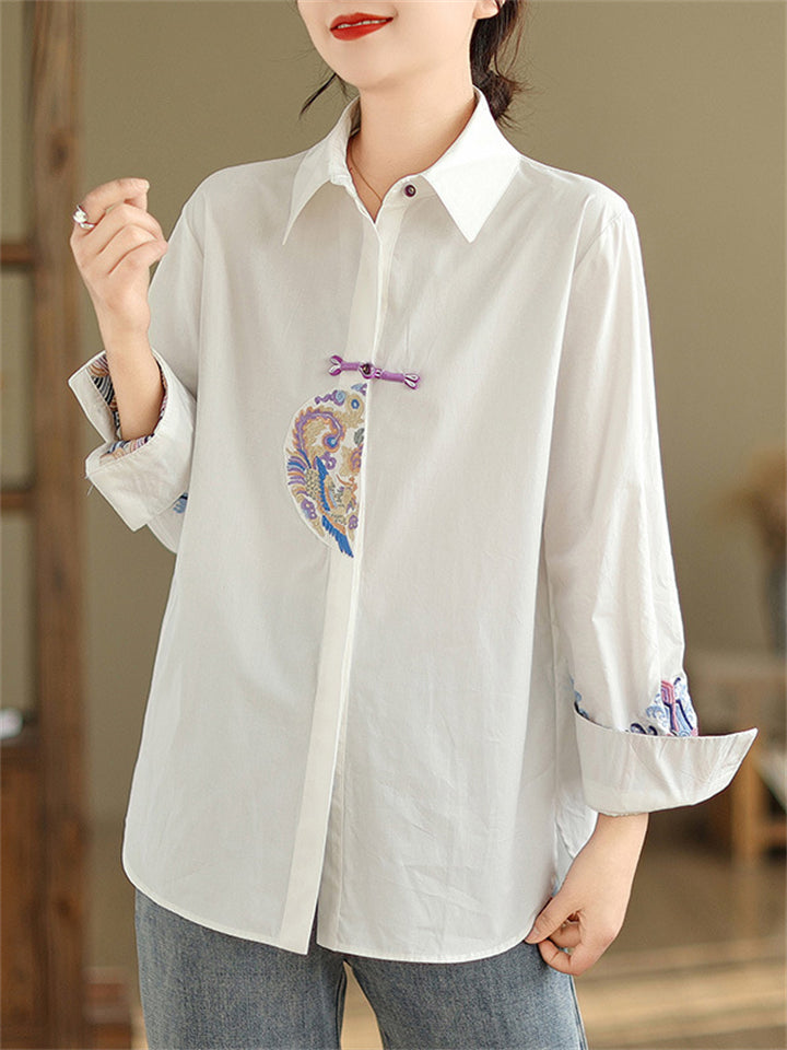 Relaxed Turn-down Collar Embroidered Shirts for Lady