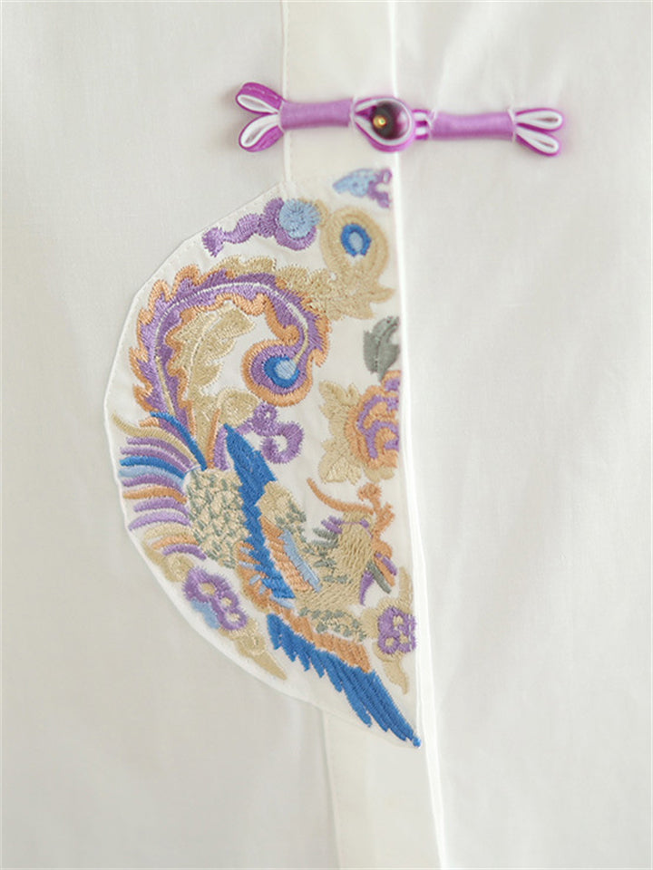 Ancient Chinese Style Floral Embroidery Linen Shirt for Women