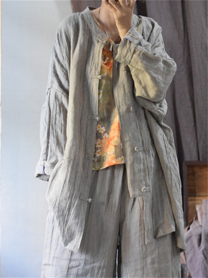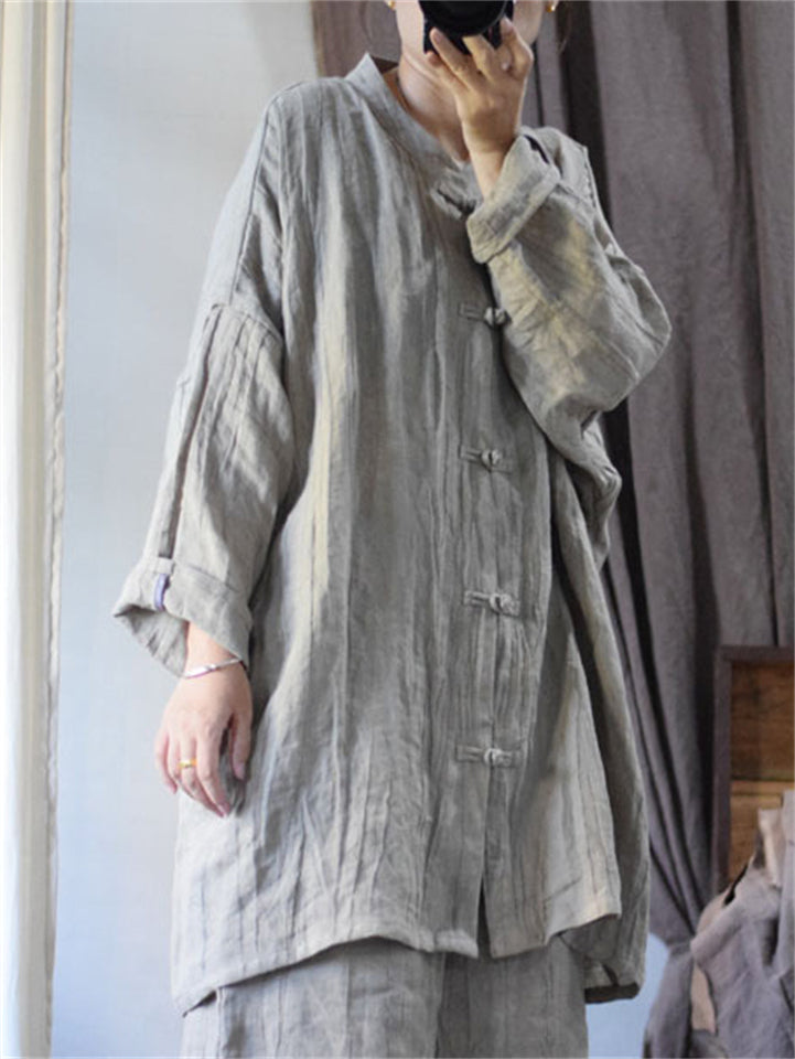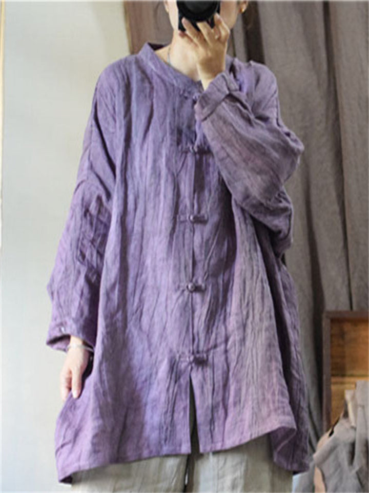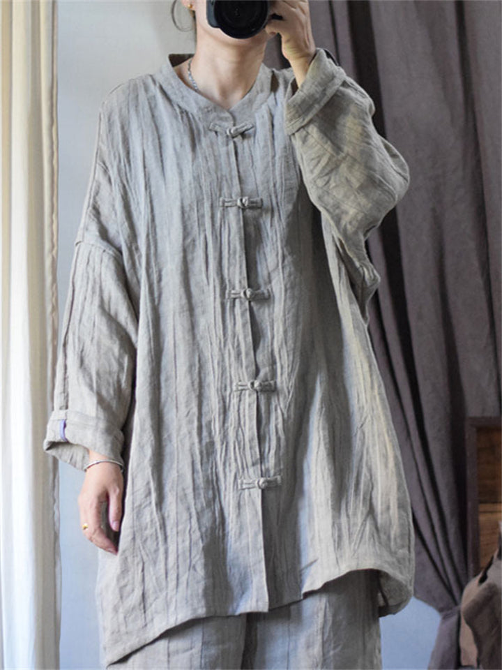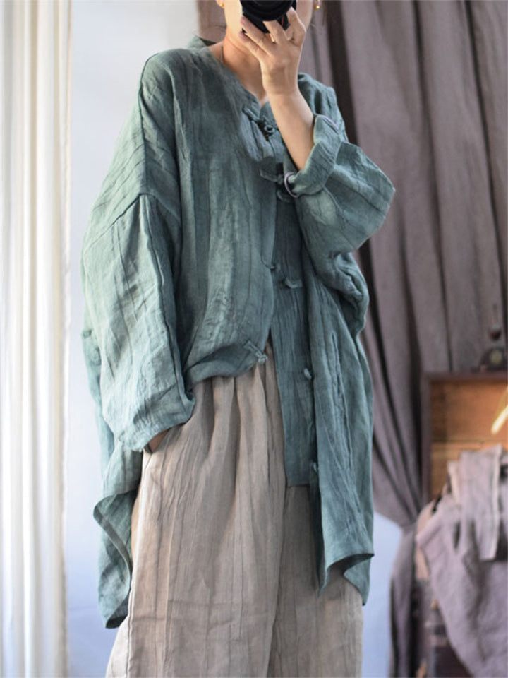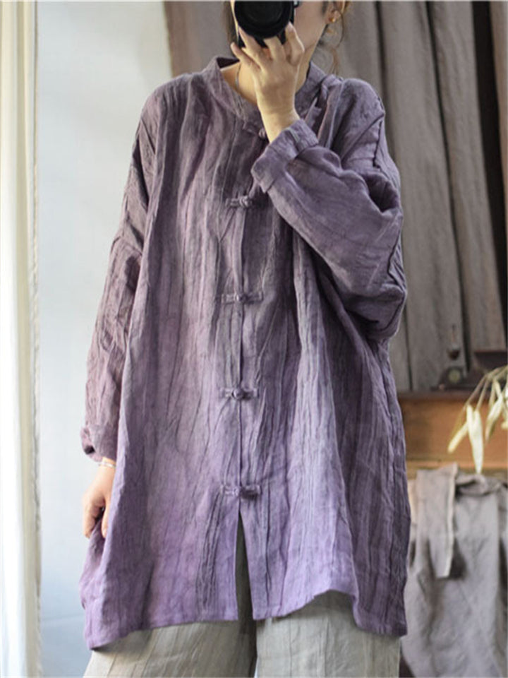 Retro Loose Linen Stand Collar Distressed Textured Shirt for Women