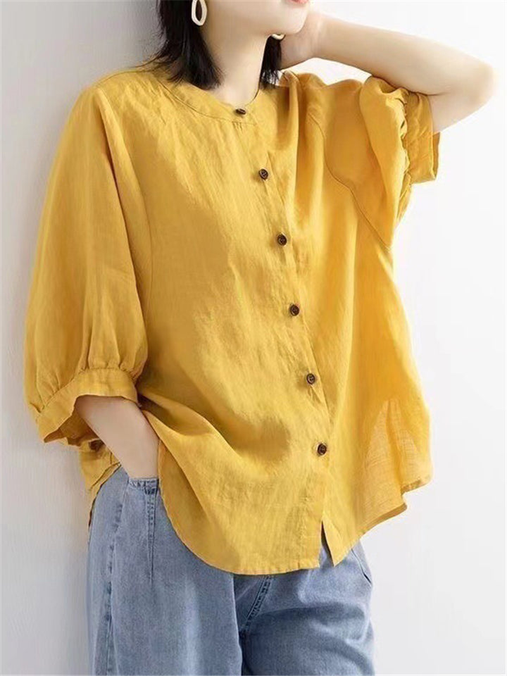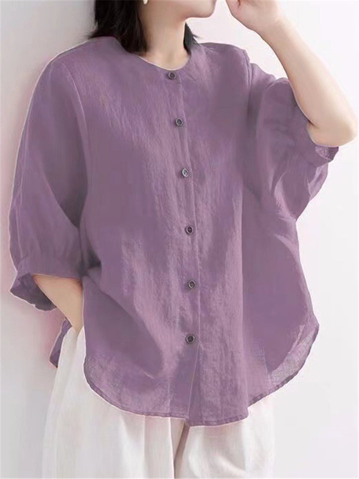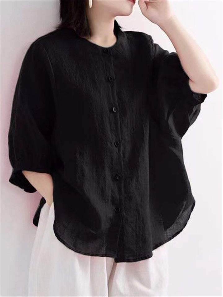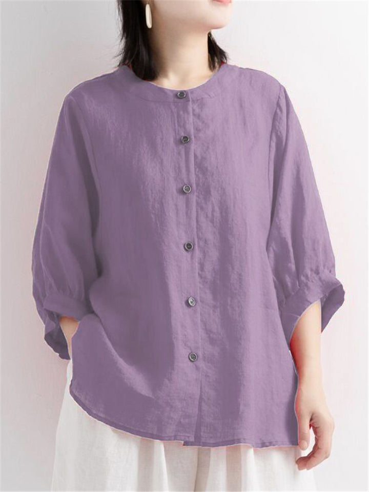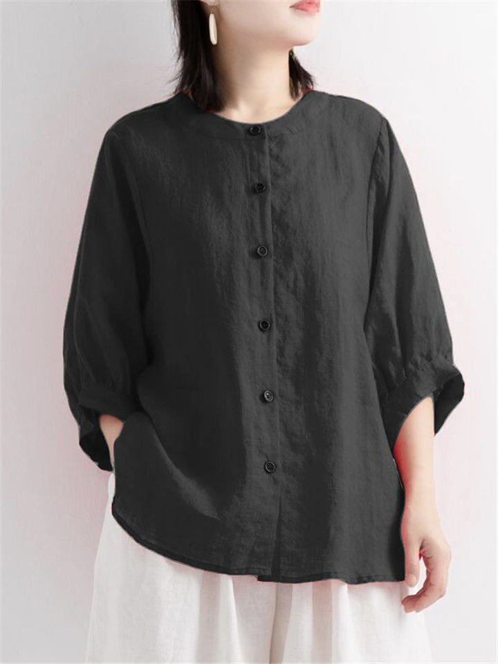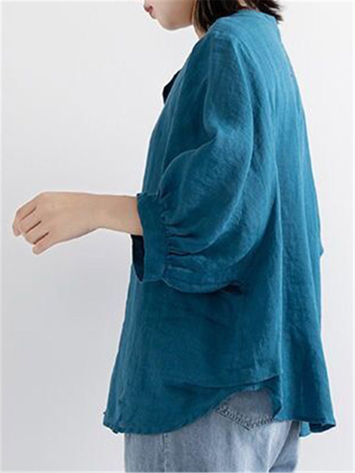 Women's Casual Solid Color 3/4 Sleeve Button Up Lapel Long Shirts