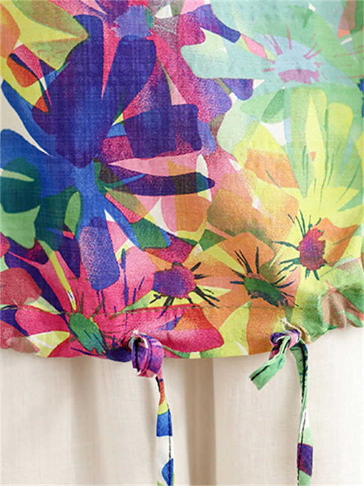 Summer Bright Daisy Print Drawstring Hem V-Neck Shirt for Female
