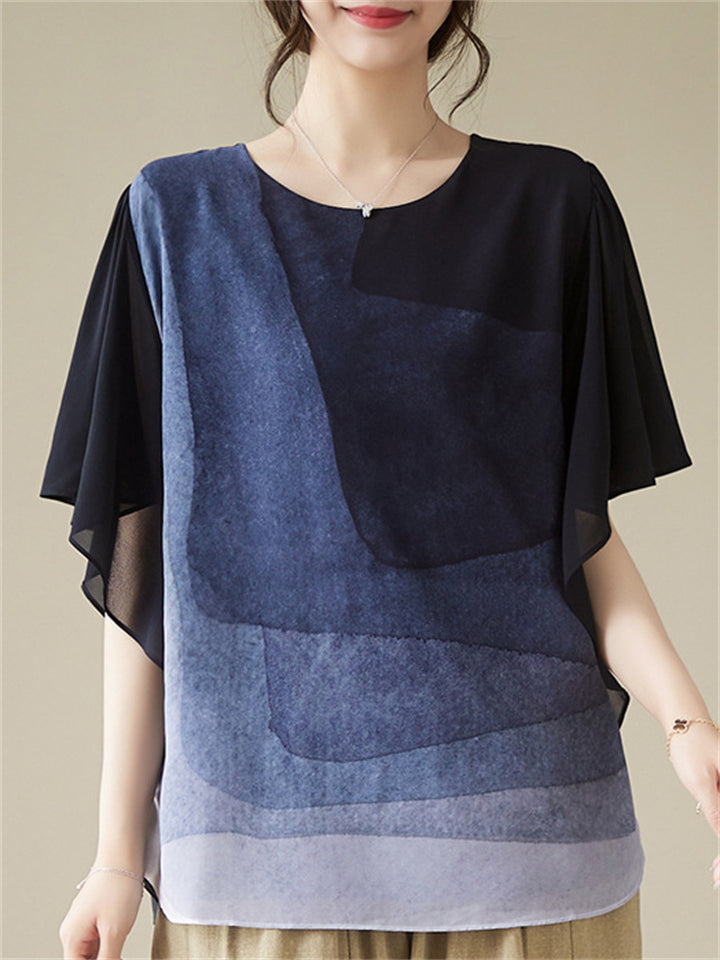 Summer Casual Women's Contrast Color Round Neck Short Sleeve Shirts