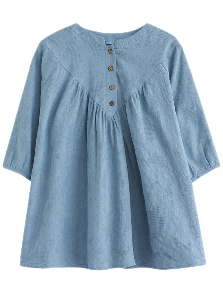 Women's Casual Solid Color 3/4 Sleeve Button Up Lapel Long Shirts