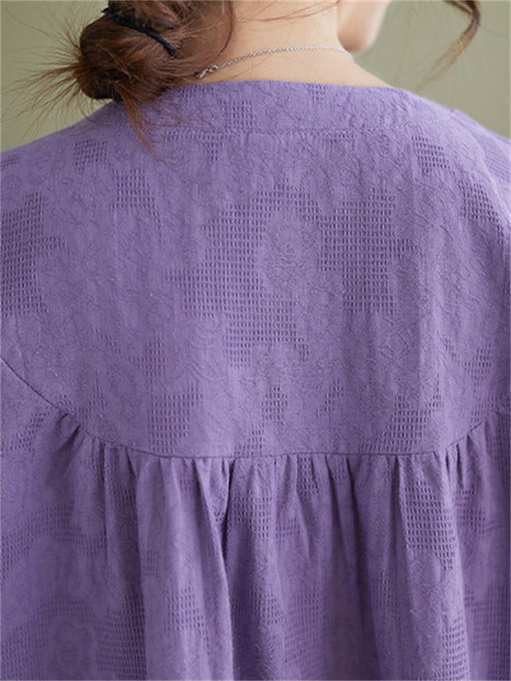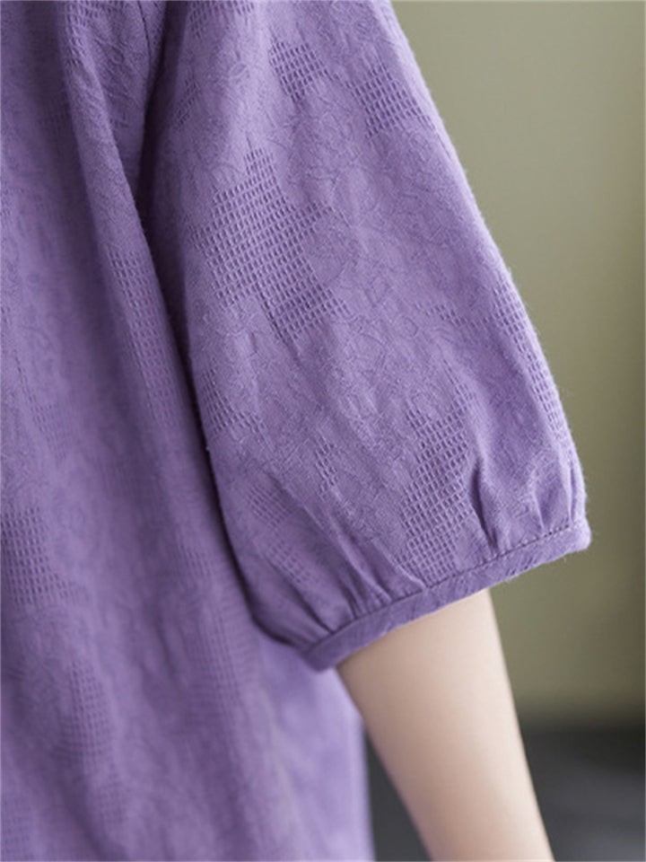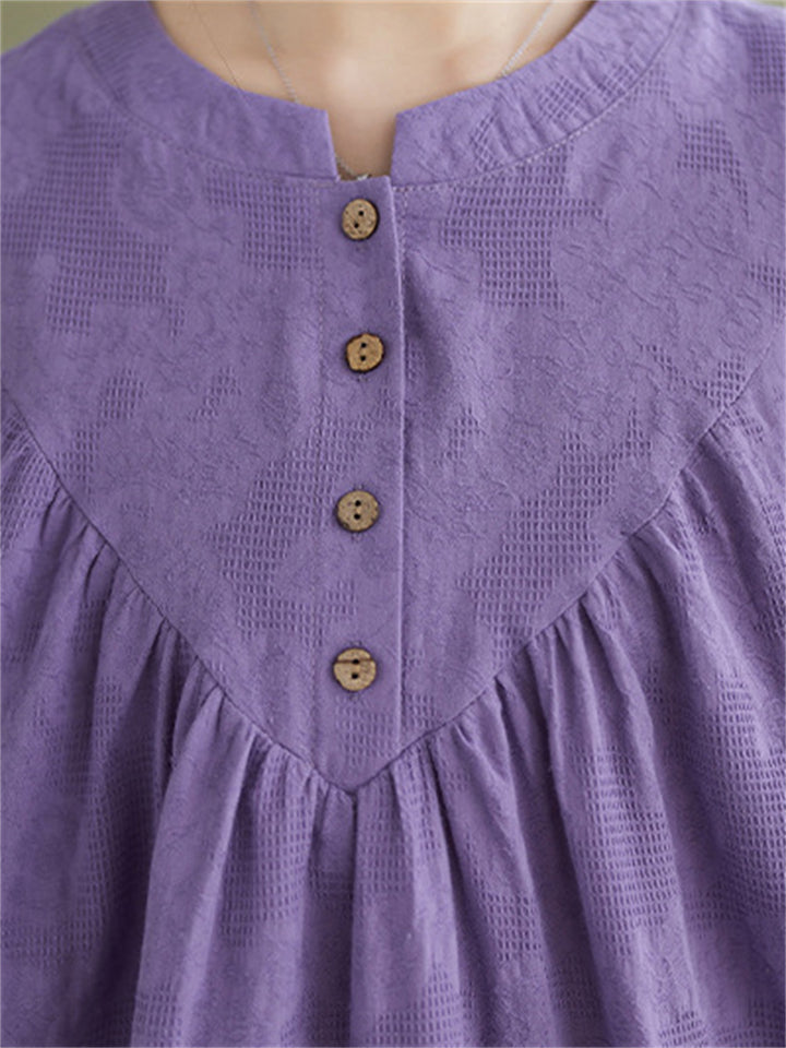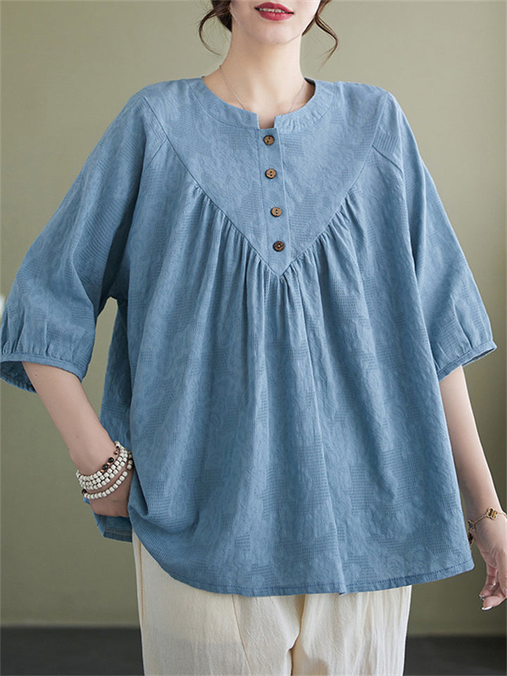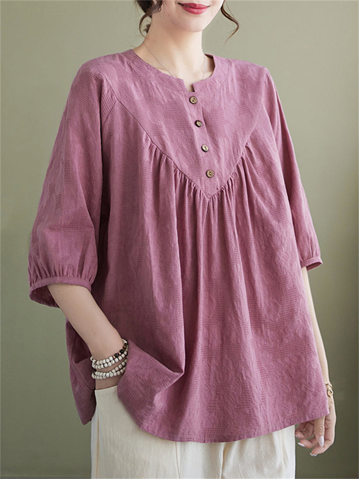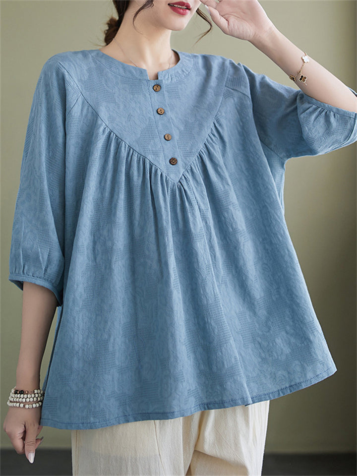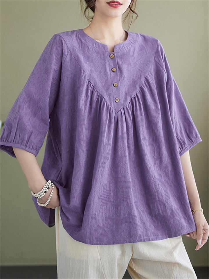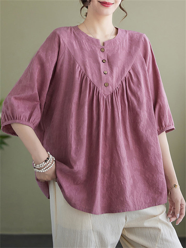 Summer Cotton Linen Half Sleeve Pleated Shirt for Women