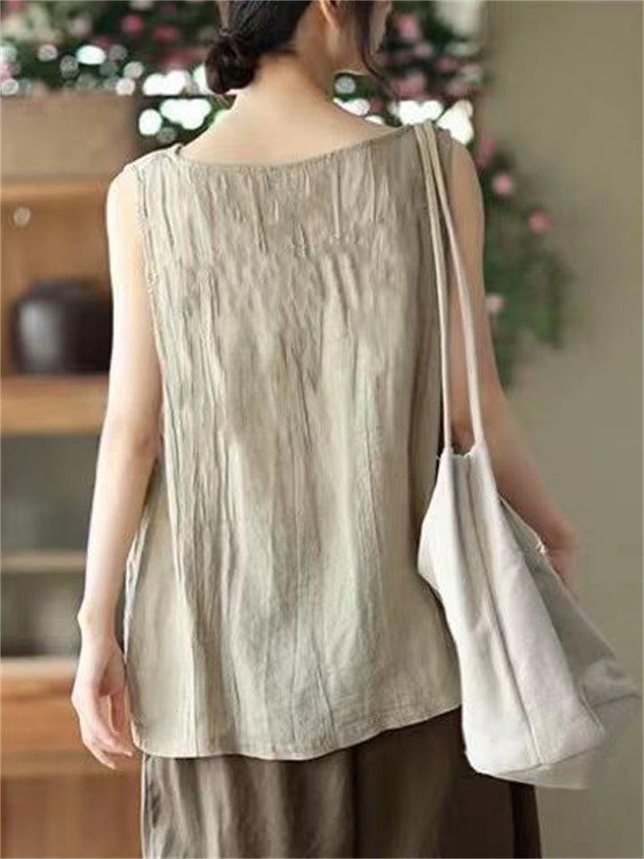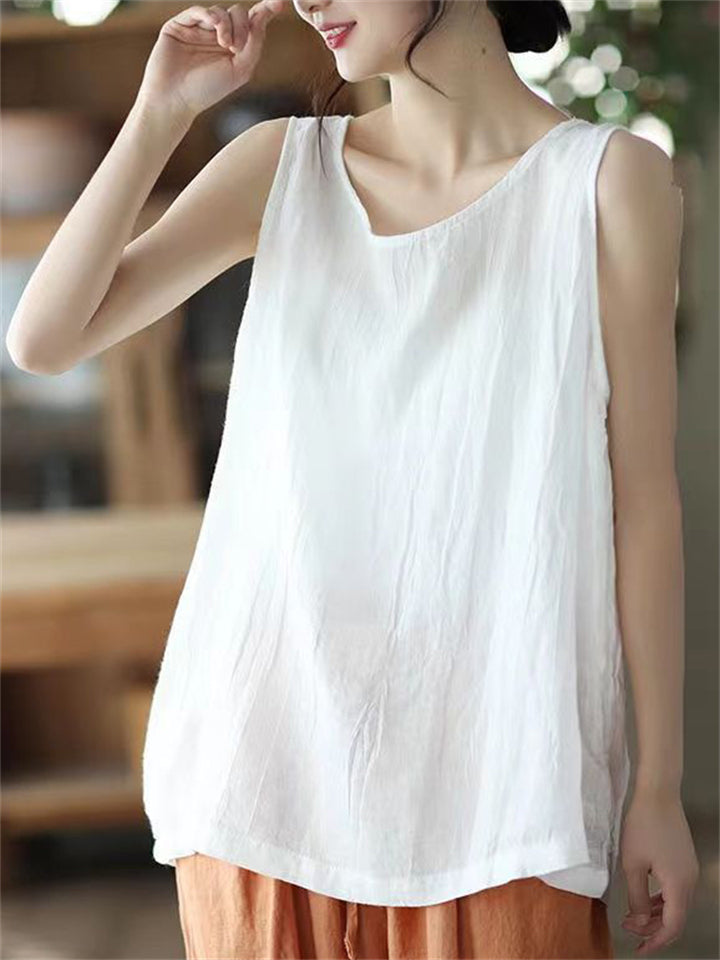 Summer Loose Solid Color Sleeveless Shirts for Women