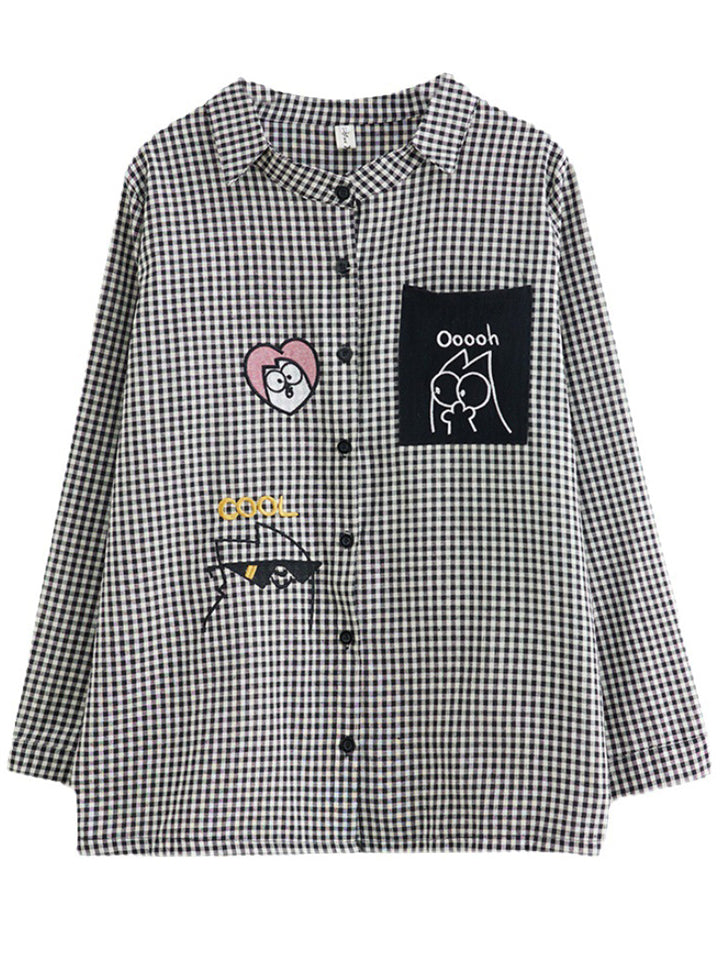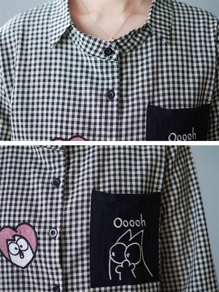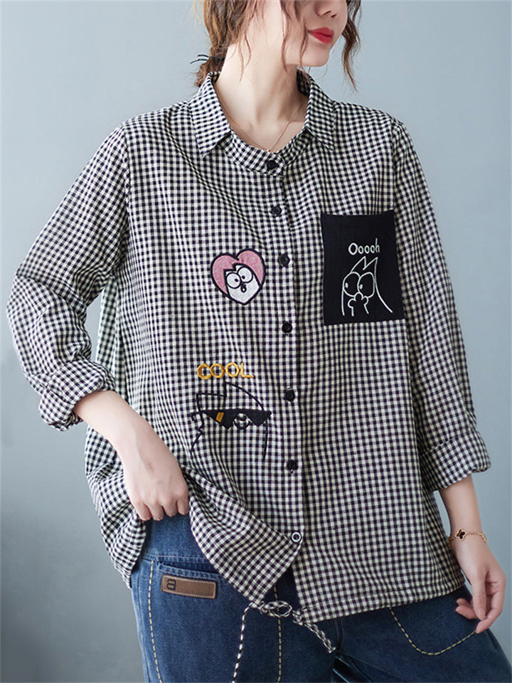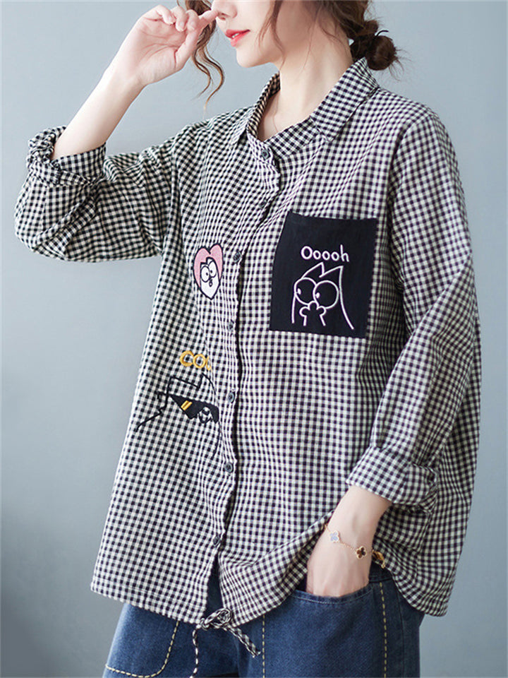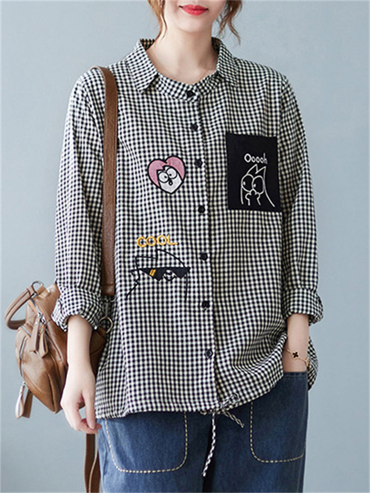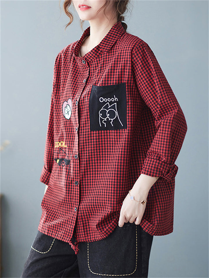 Trendy Cute Lapel Long Sleeve Plaid Shirt for Women