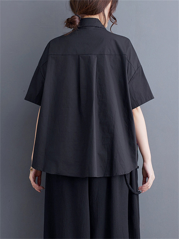 Women's Retro Casual Solid Color Button Up Lapel Cardigan Shirts