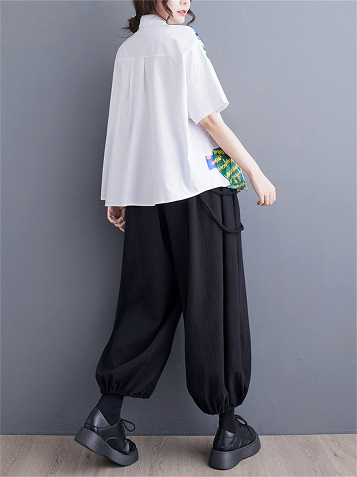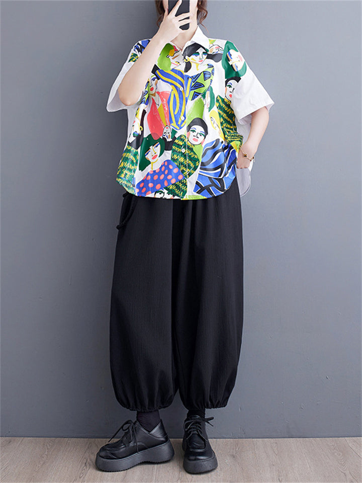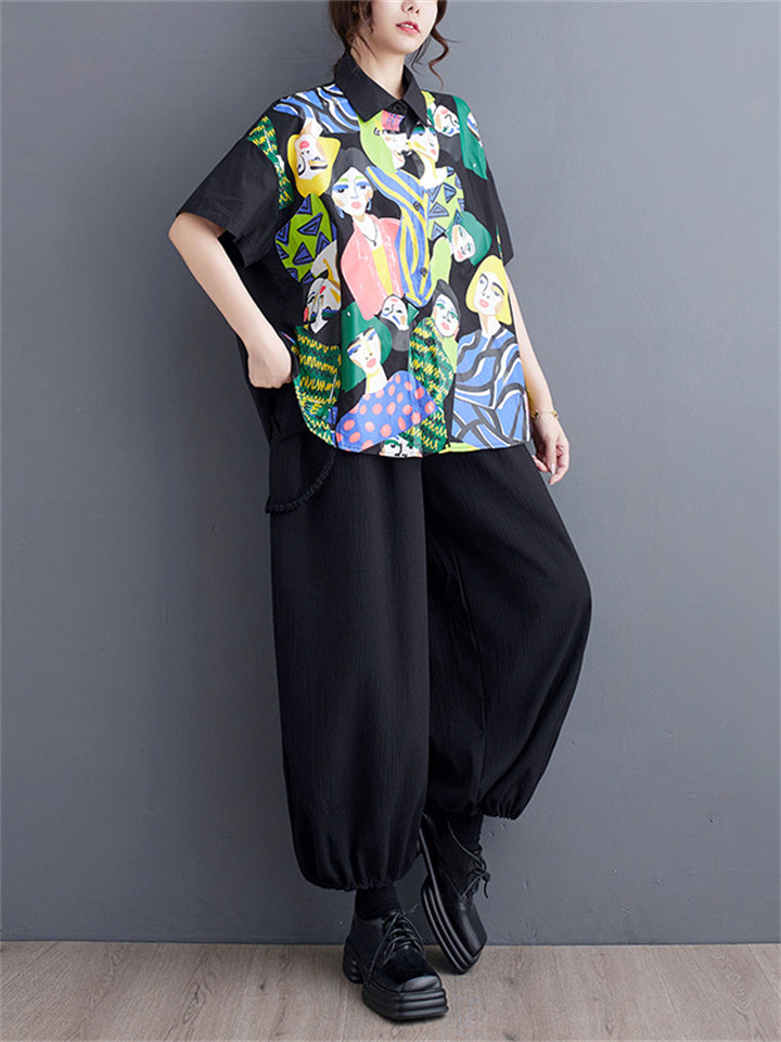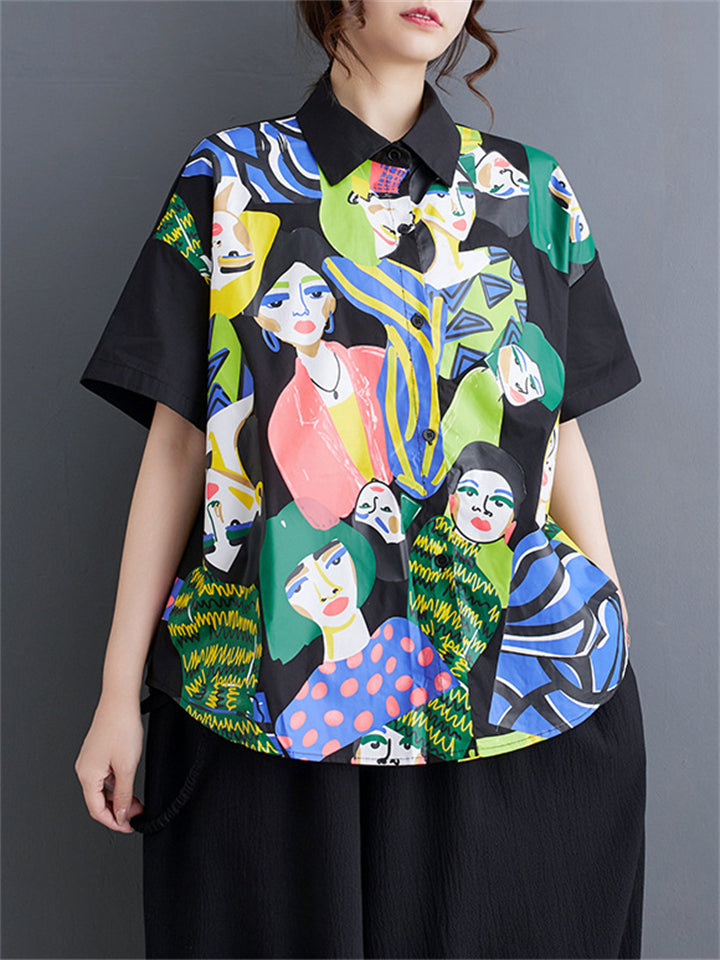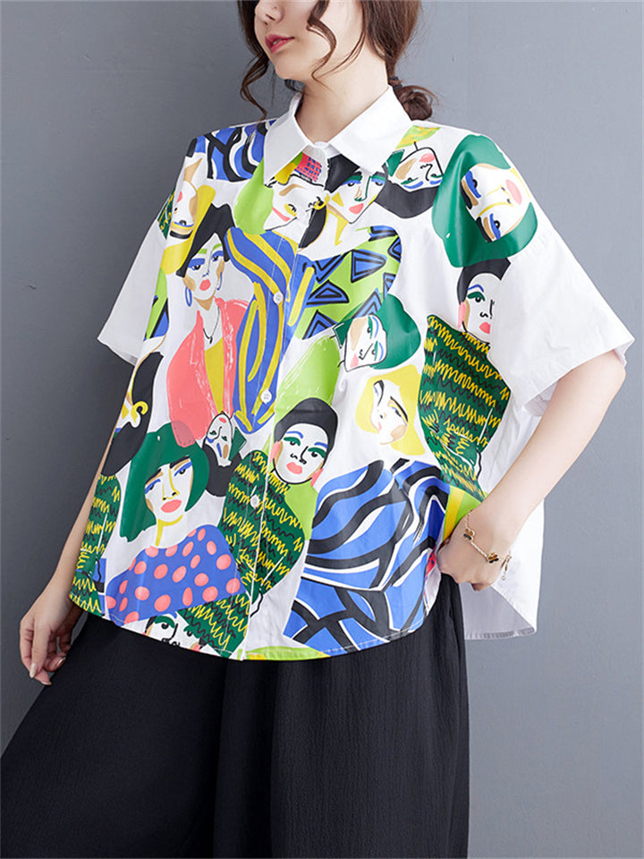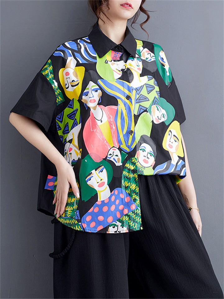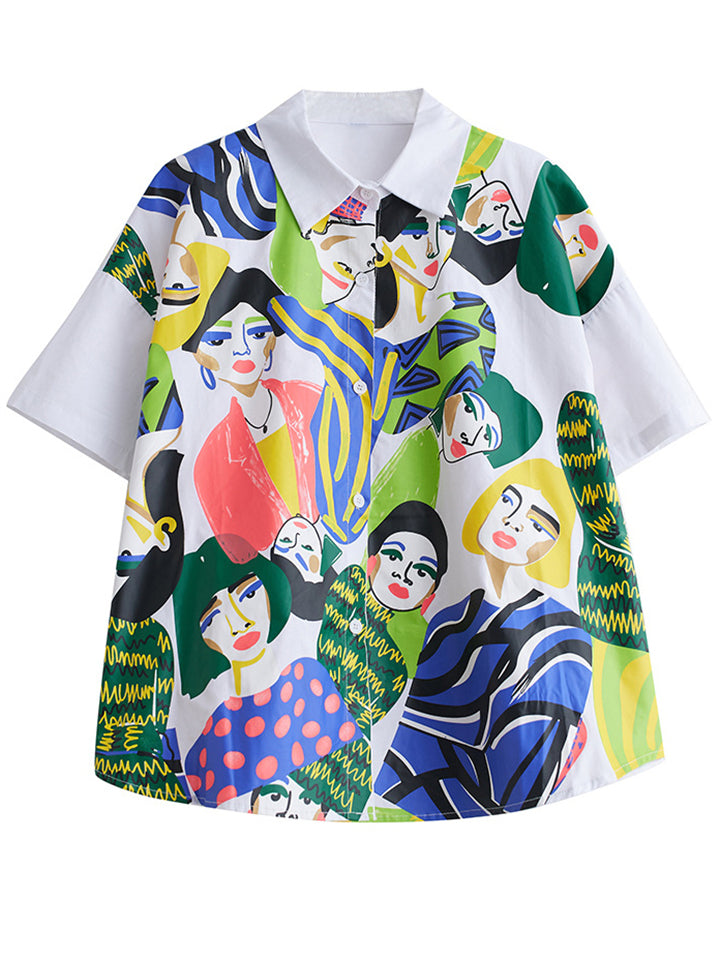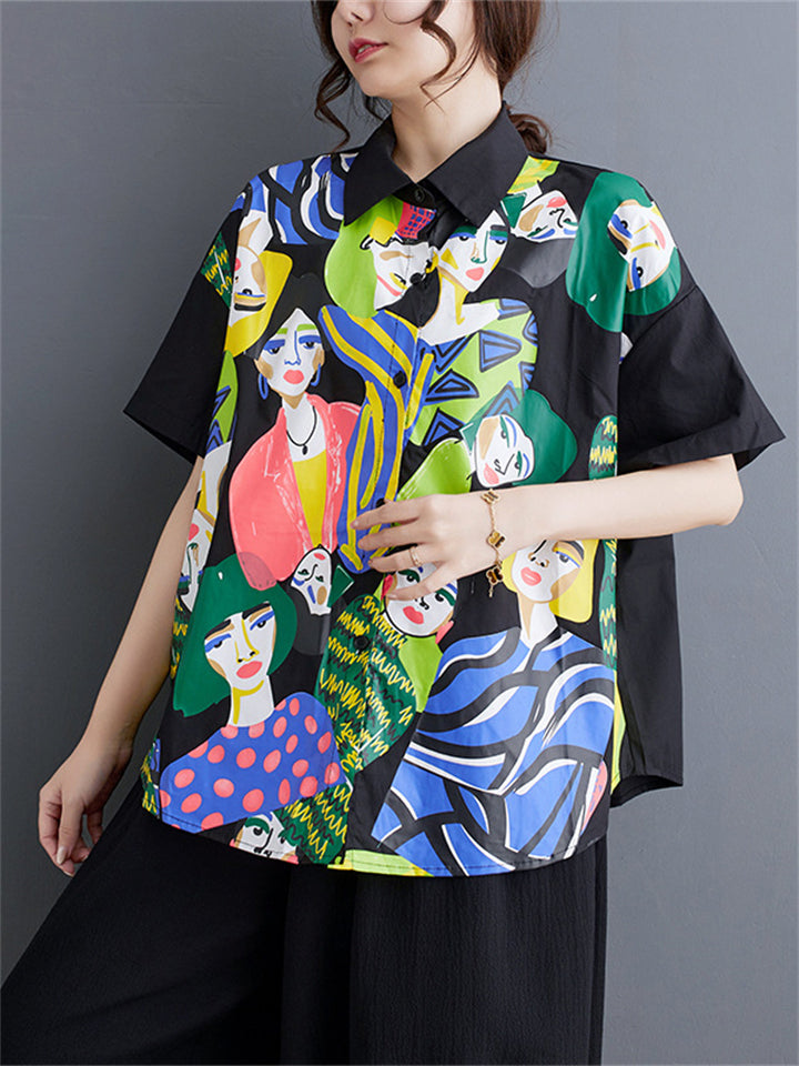 Unique Ladies Character Art Print Turn-down Collar Shirts