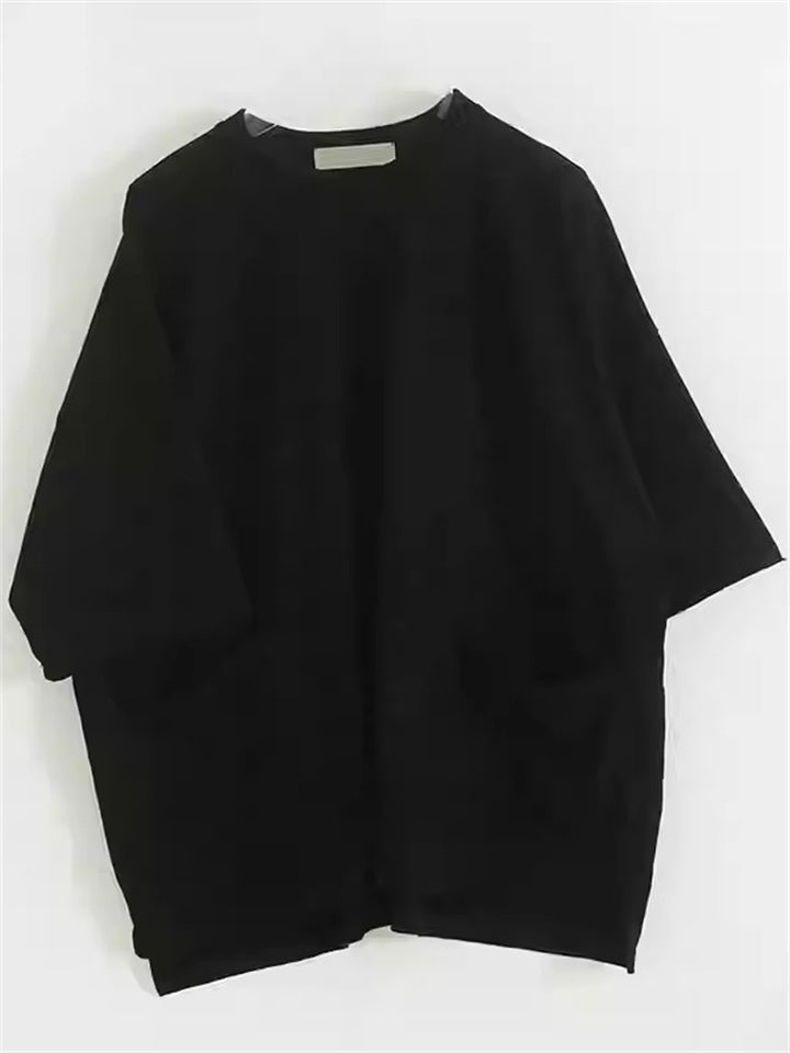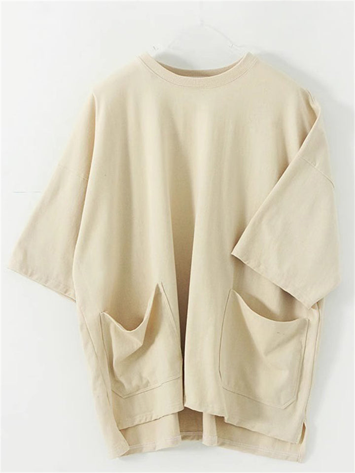 Unisex Loose Cotton Short BatWing Sleeve T-Shirt with Pockets