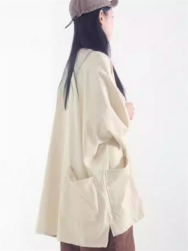 Women's Retro Casual Solid Color Button Up Lapel Cardigan Shirts