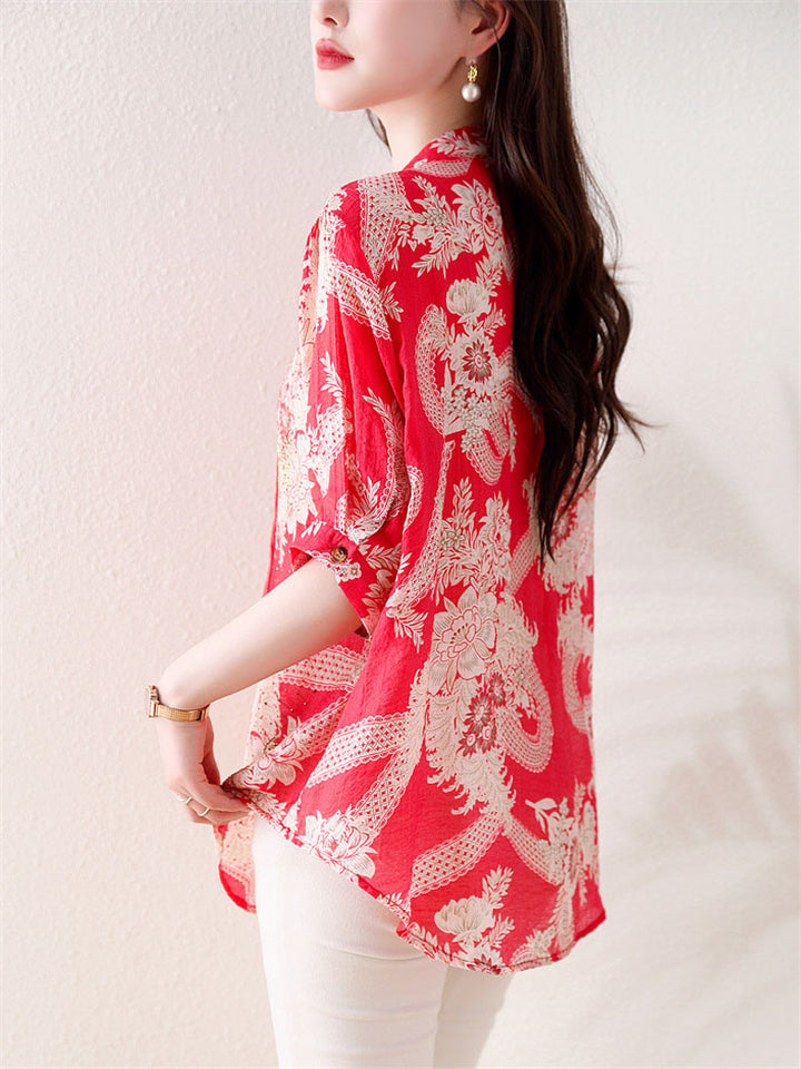 Women's Casual Retro Printed Long Sleeve Lapel Shirts