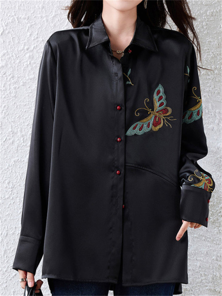 Women's Flower Embroidery Cheongsam Shirt