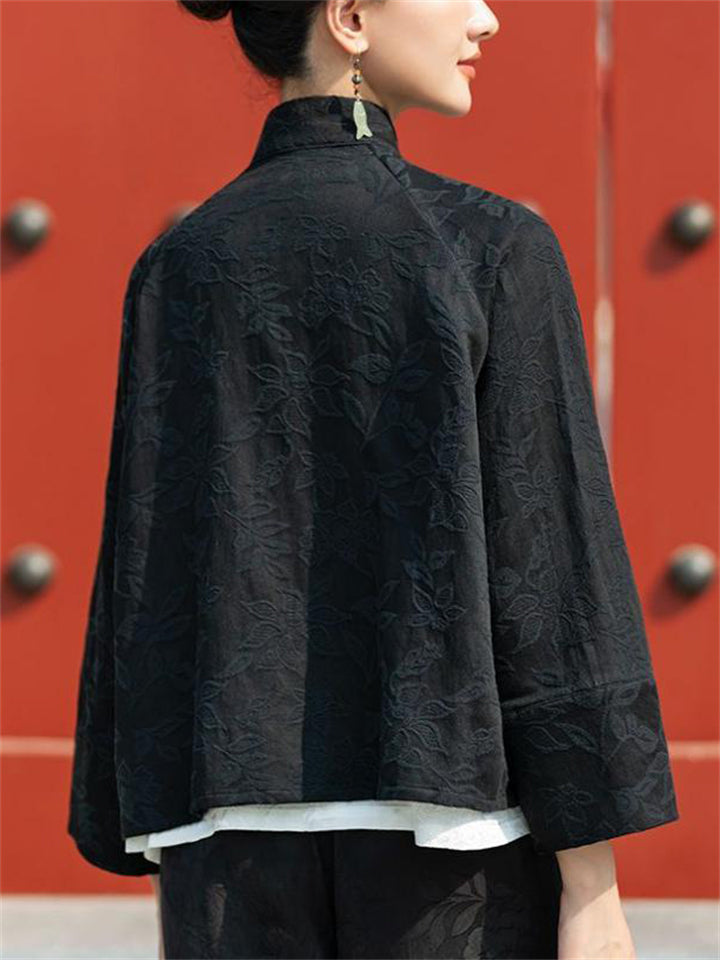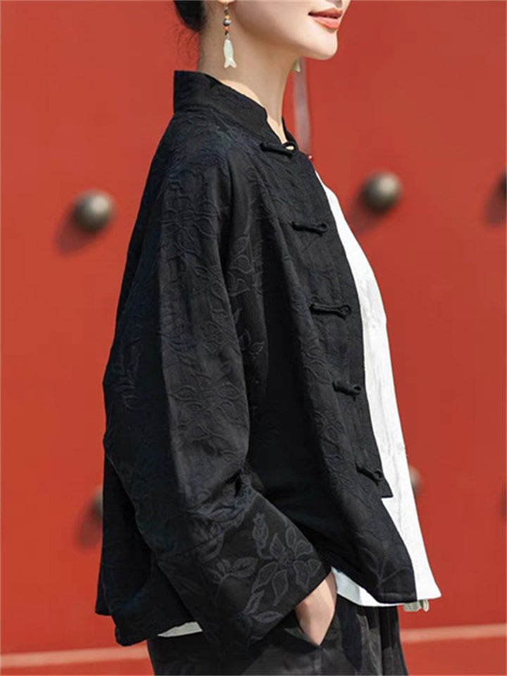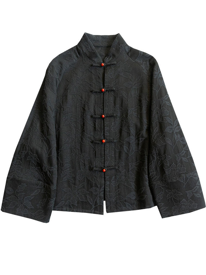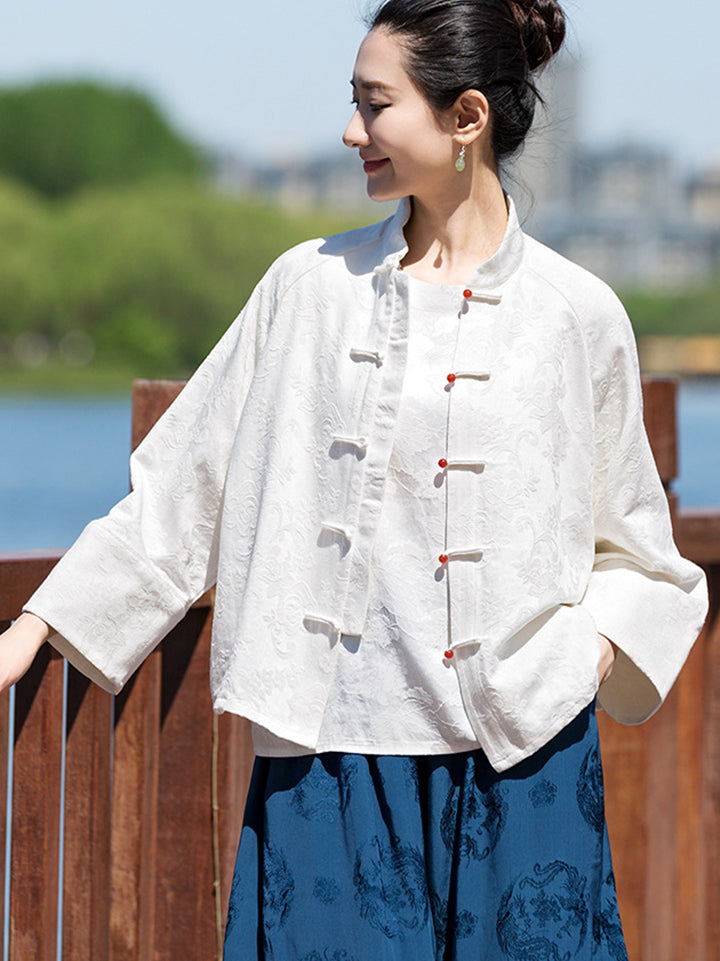 Ancient Chinese Style Floral Embroidery Linen Shirt for Women
