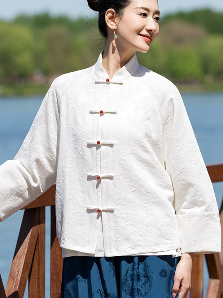 Women's Elegant Stand Collar Mandarin Button Tang Suit Shirt