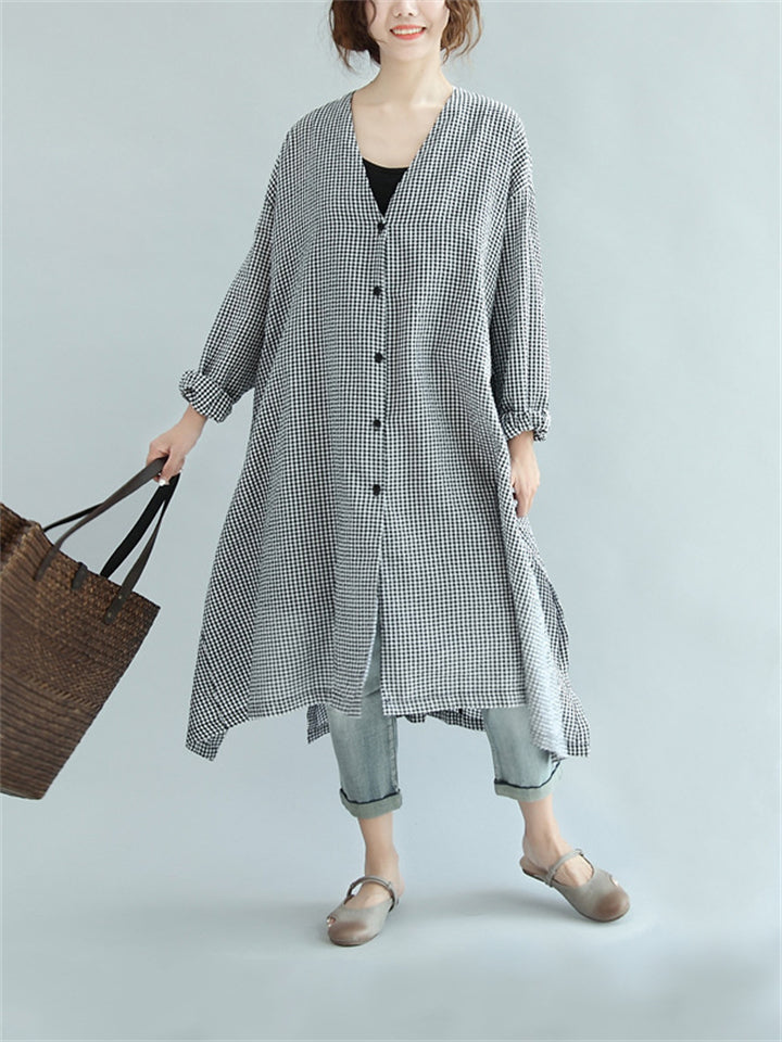 Women's Casual Solid Color 3/4 Sleeve Button Up Lapel Long Shirts