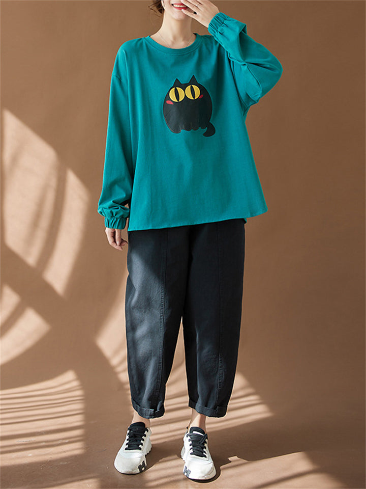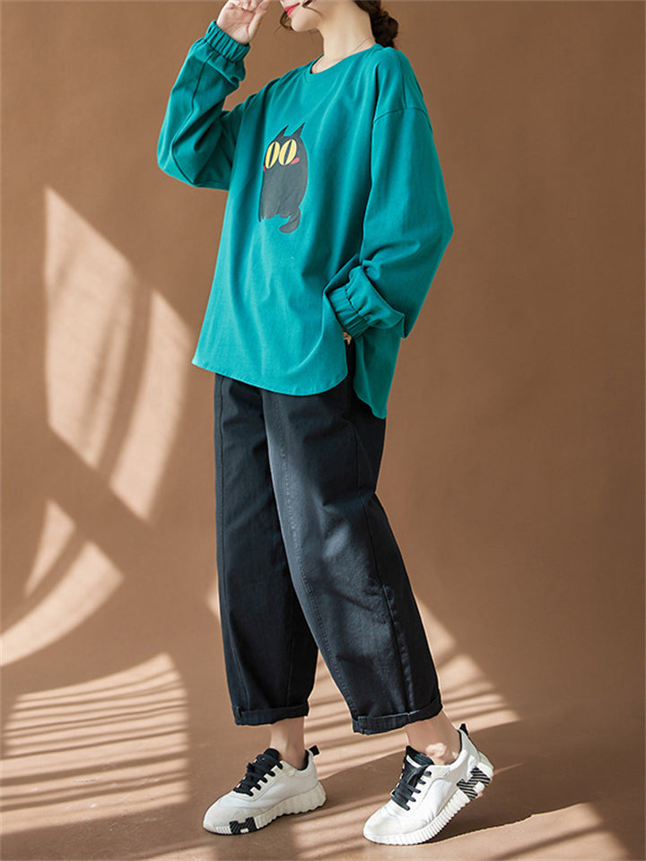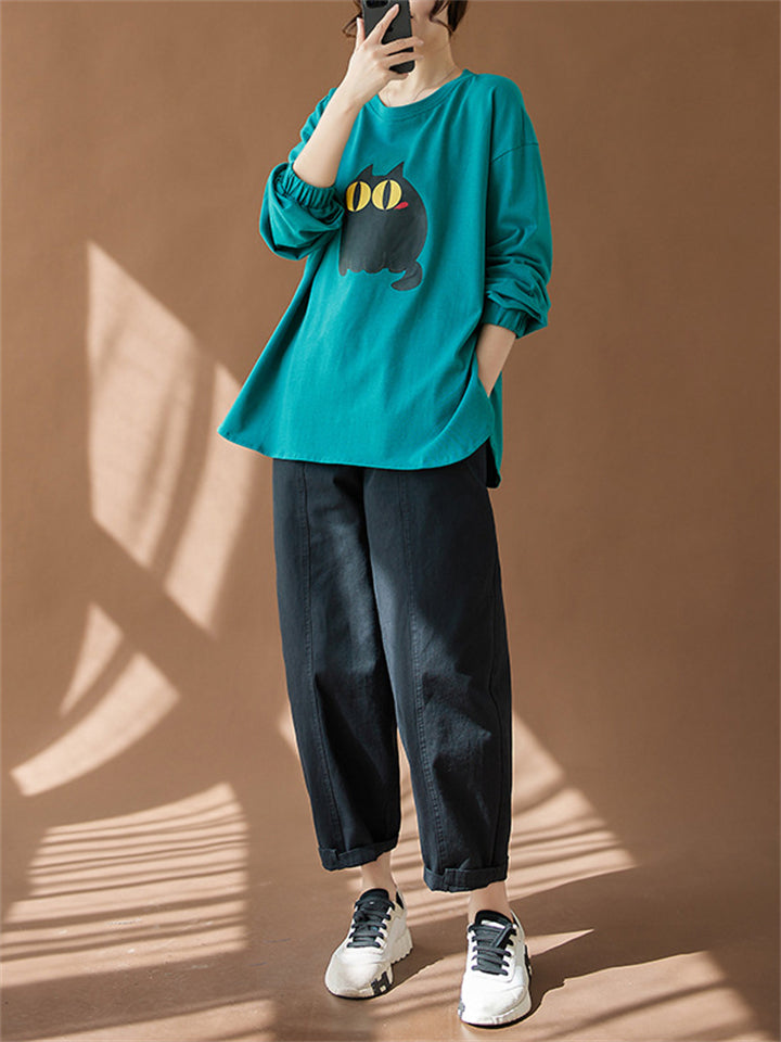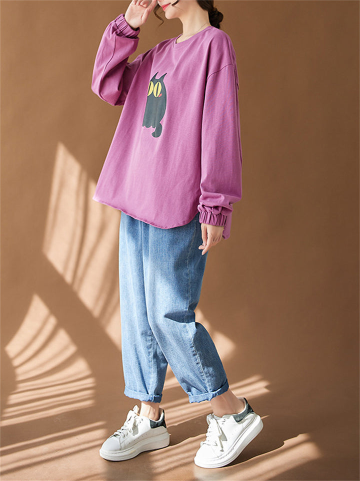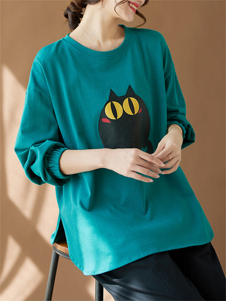 Women's Cartoon Print Loose Fit Side Slit T-shirts