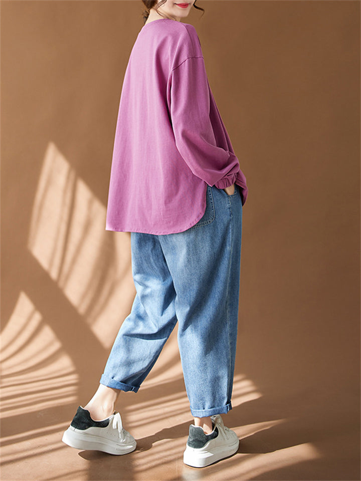 Women's Autumn Solid Color Loose Lapel Long Sleeve Cardigan Denim Shirts