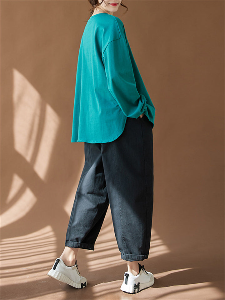 Women's Retro Casual Solid Color Button Up Lapel Cardigan Shirts