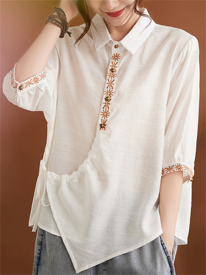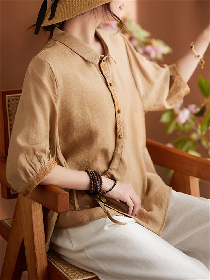 Women's Casual Embroidery Lapel Half Sleeve Shirts