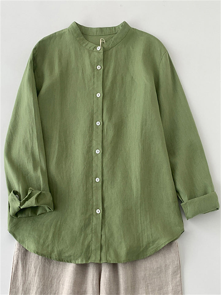 Women's Casual Green Solid Color Stand Collar Long Sleeve Shirts