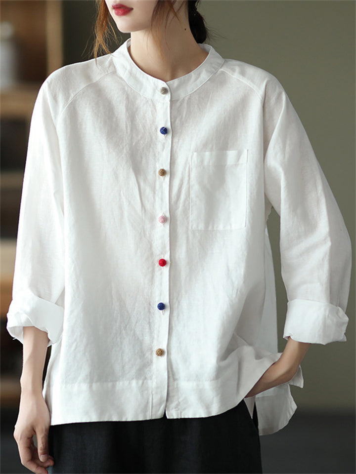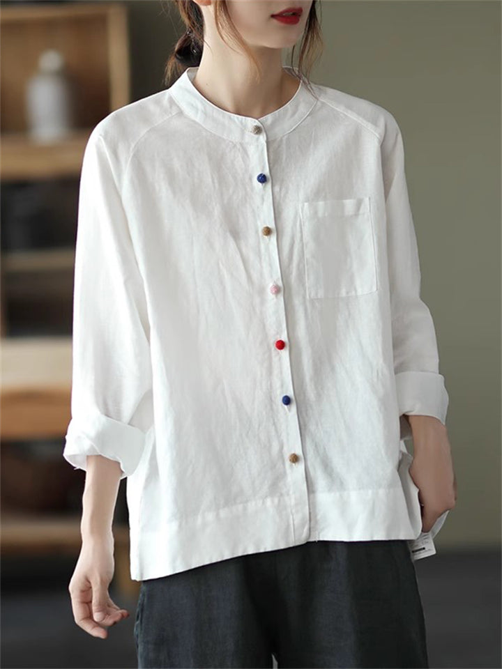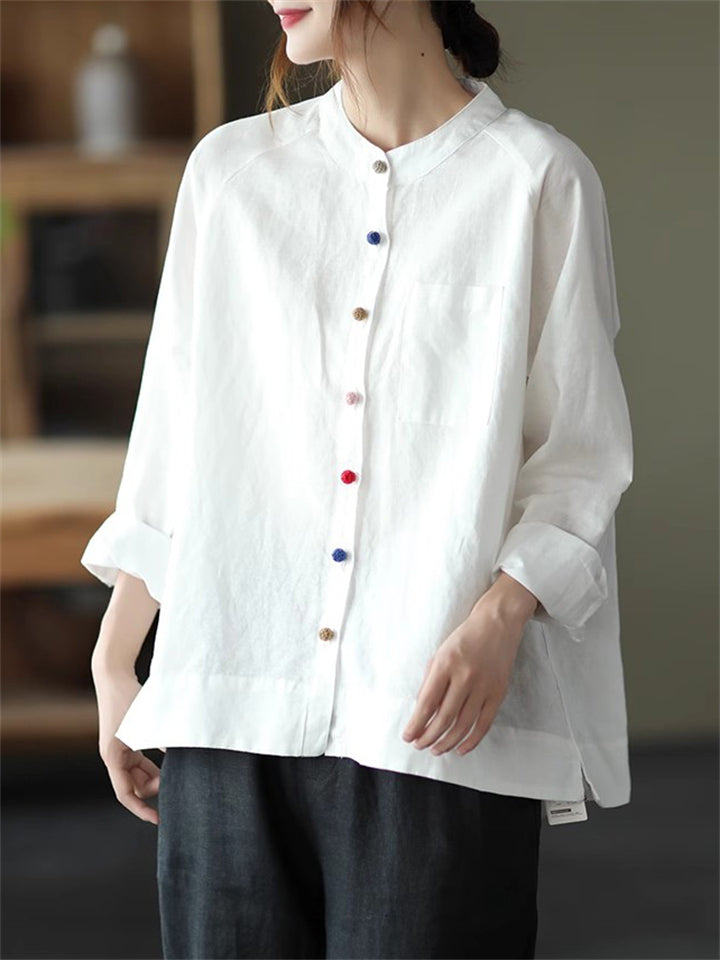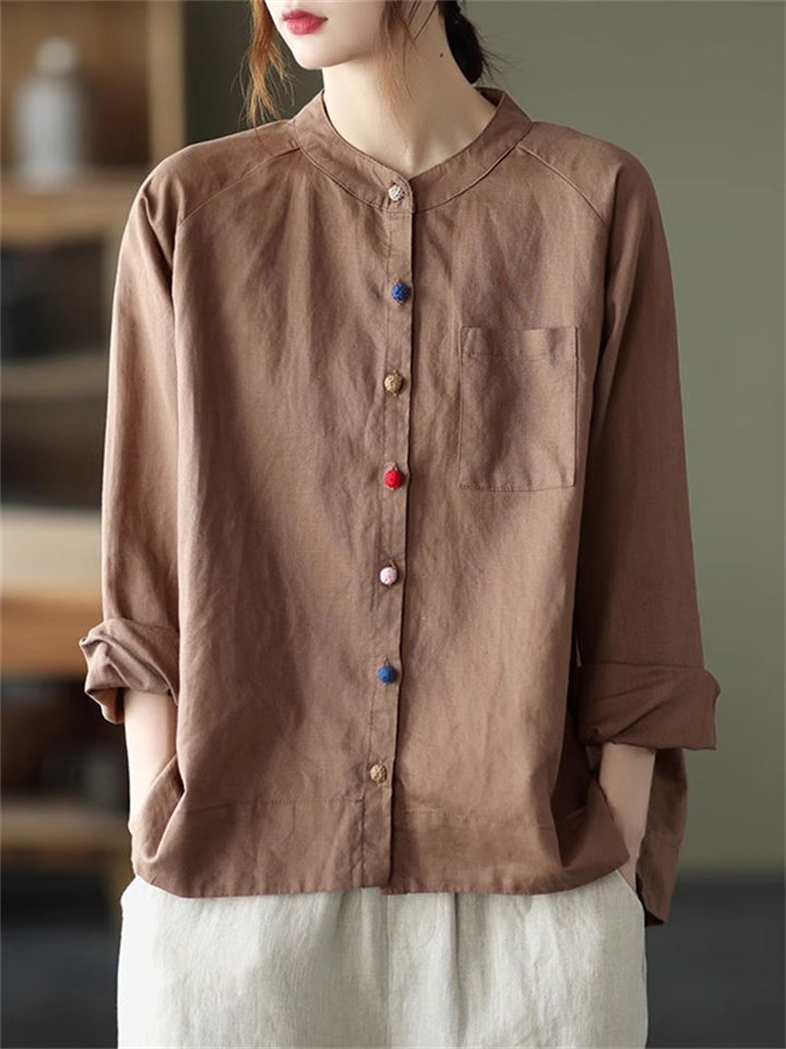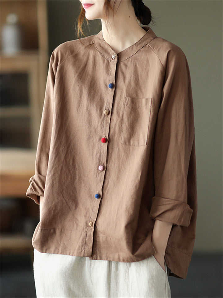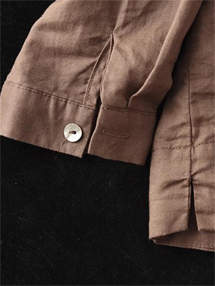 Women's Retro Casual Solid Color Button Up Lapel Cardigan Shirts