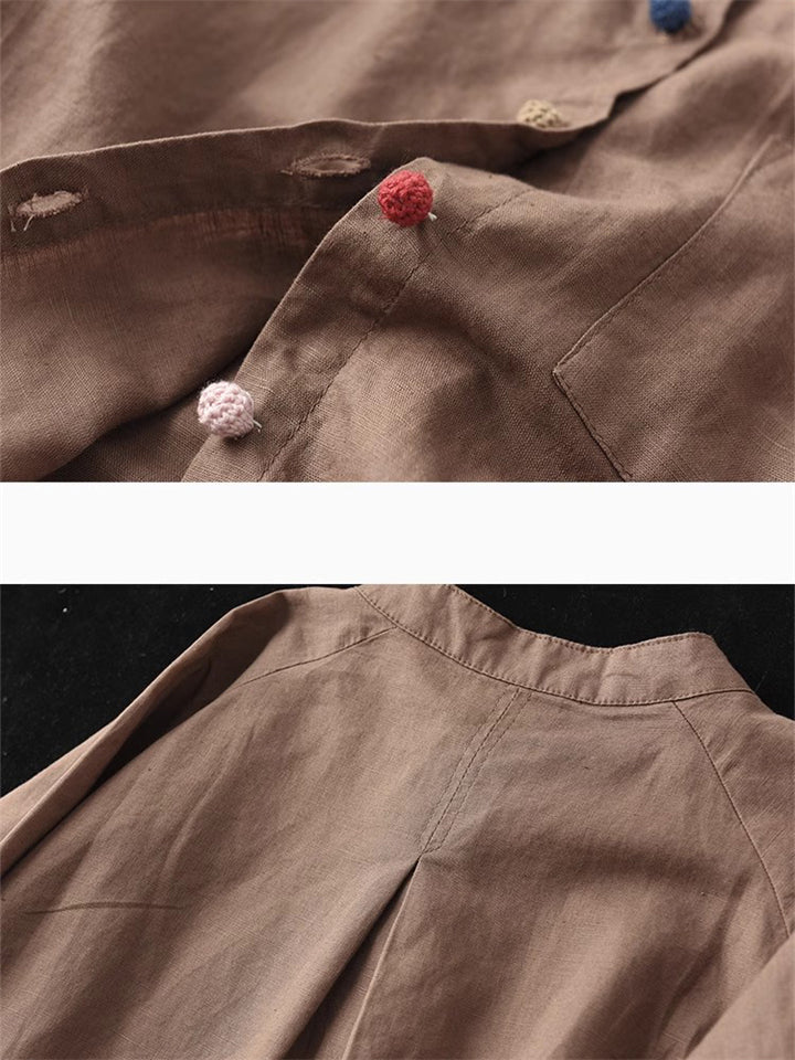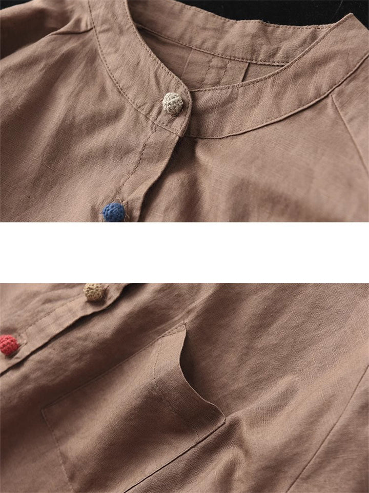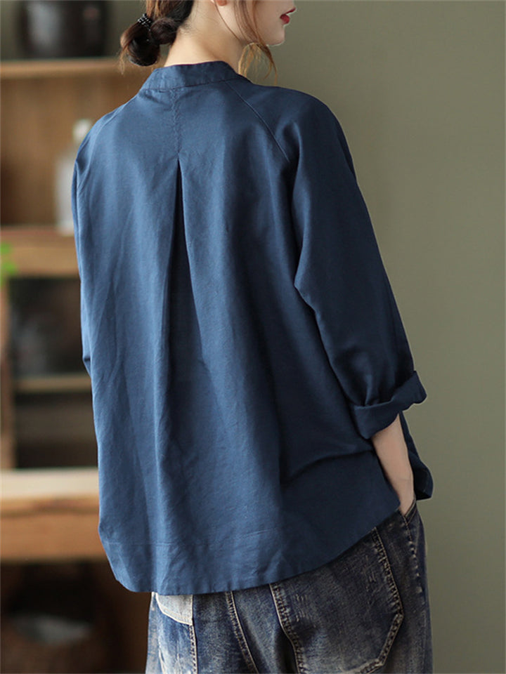 Ancient Chinese Style Floral Embroidery Linen Shirt for Women