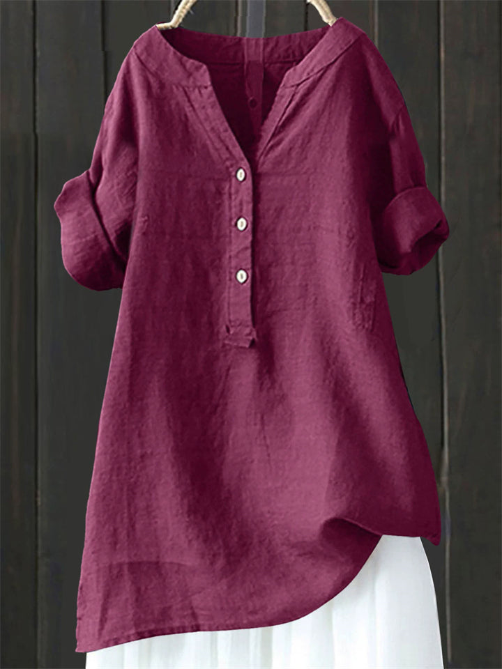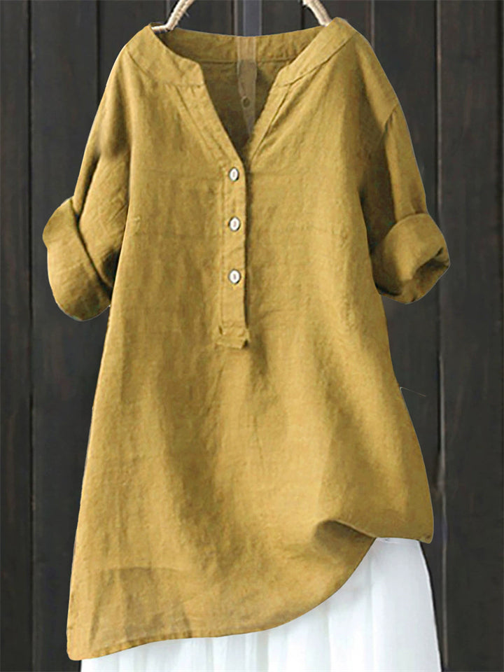 Women's Casual Solid Color 3/4 Sleeve Button Up Lapel Long Shirts