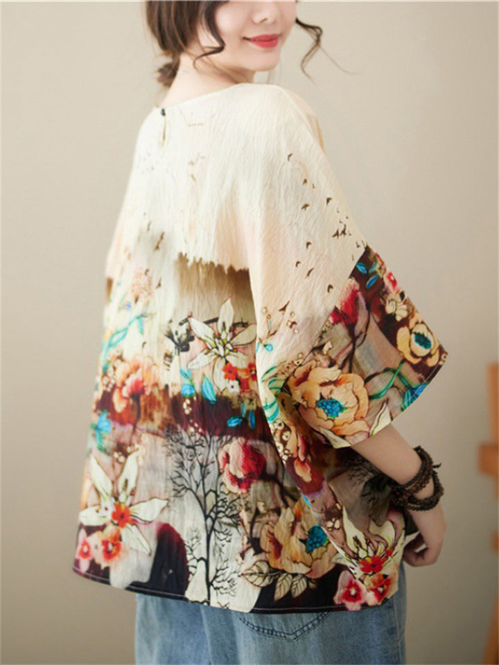 Summer Bohemian Style V Neck Print Vacation Shirt for Women