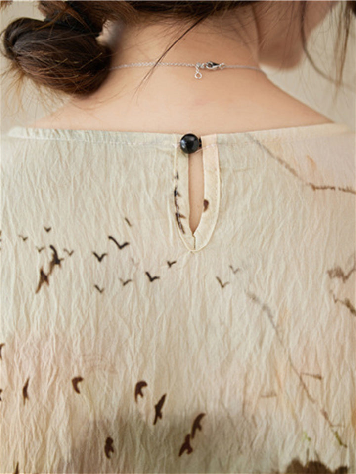 Ancient Chinese Style Floral Embroidery Linen Shirt for Women