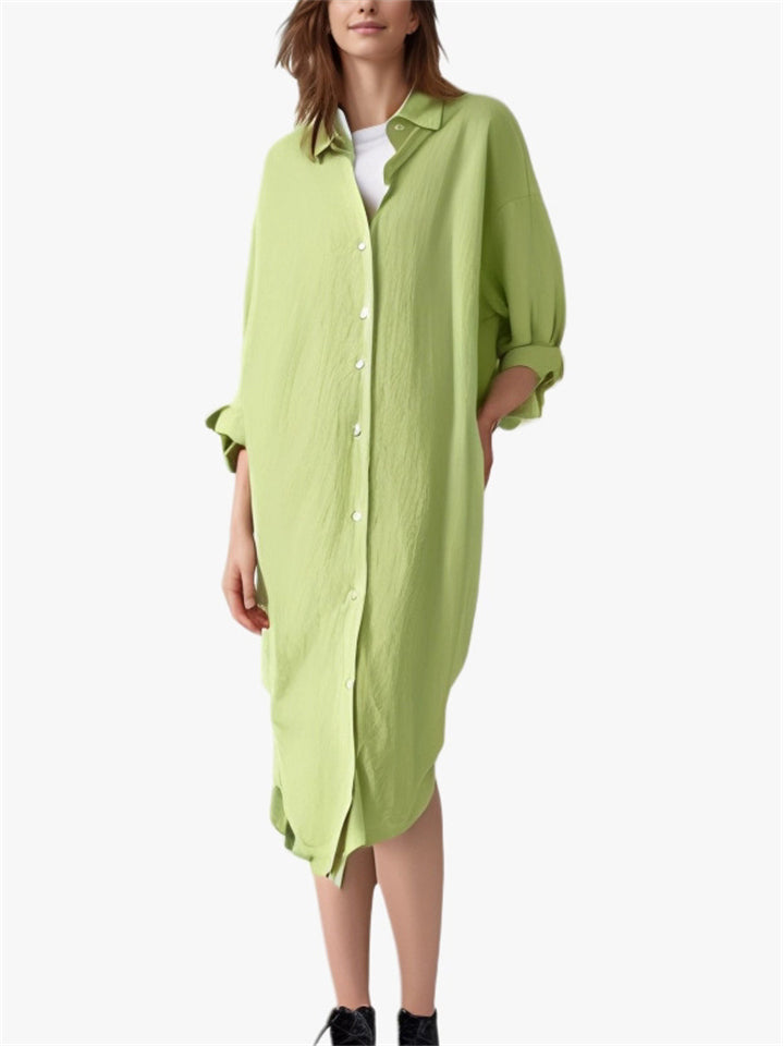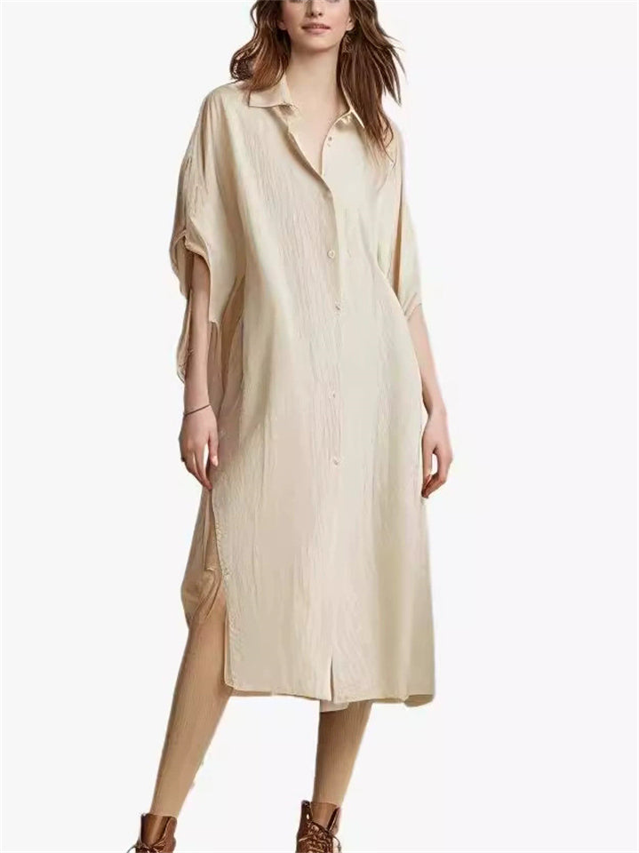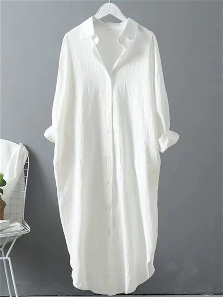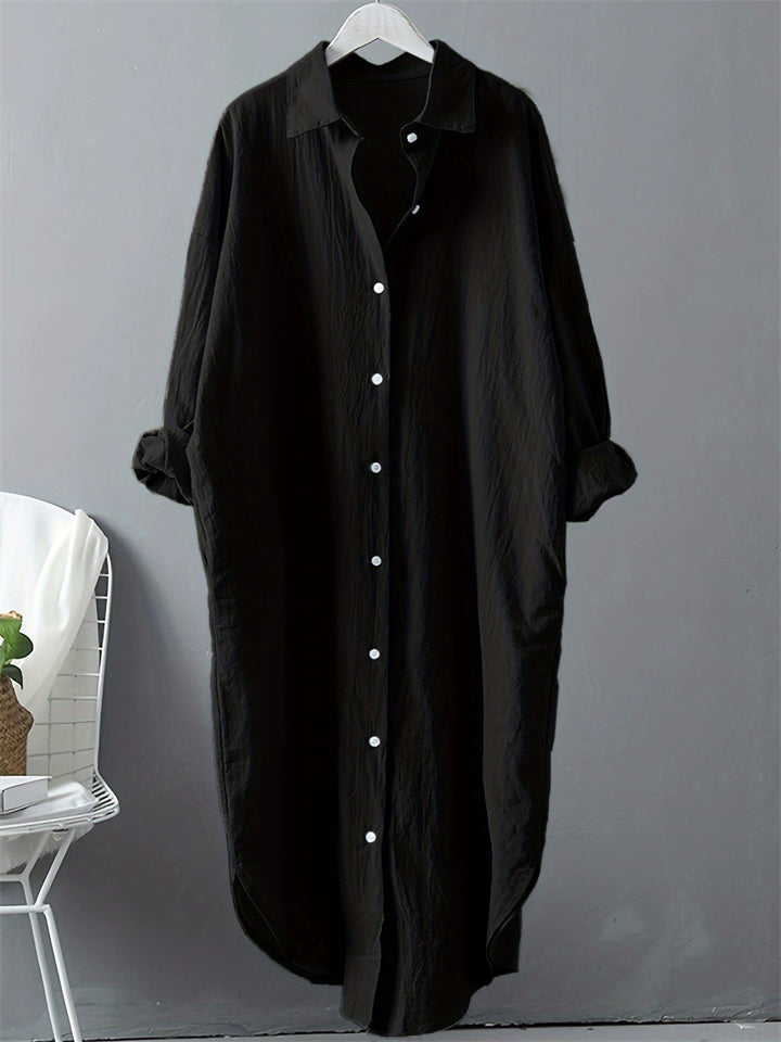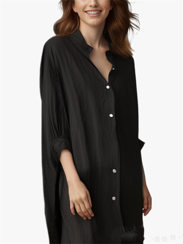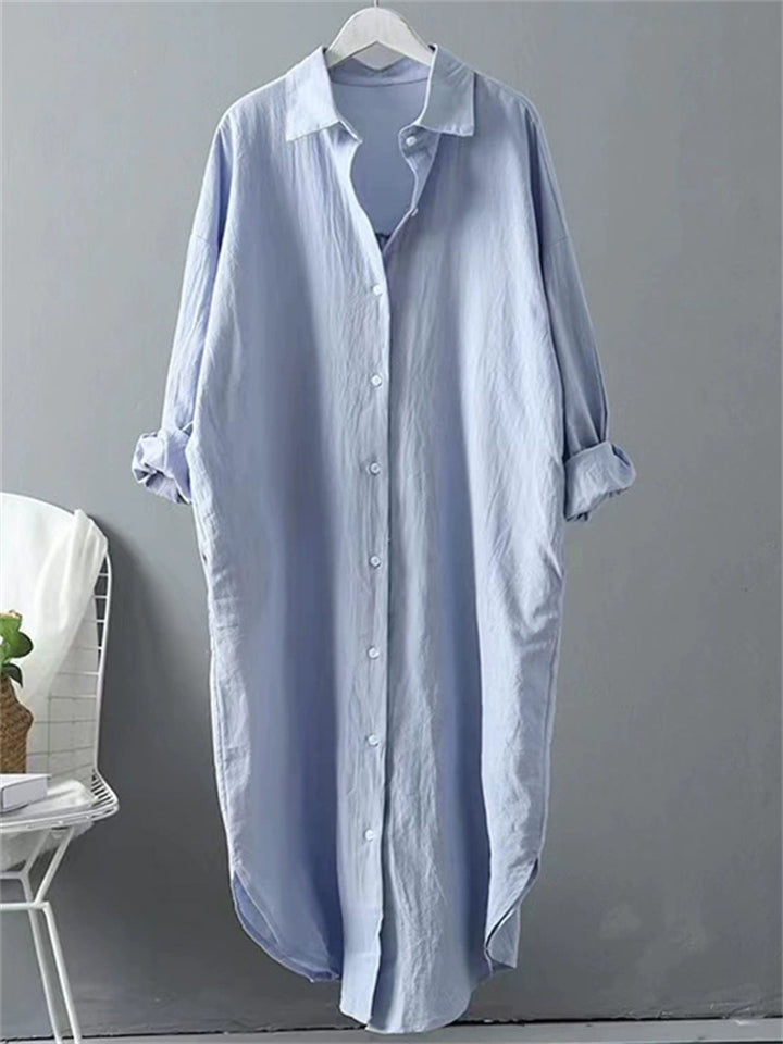 Women's Casual Solid Color 3/4 Sleeve Button Up Lapel Long Shirts