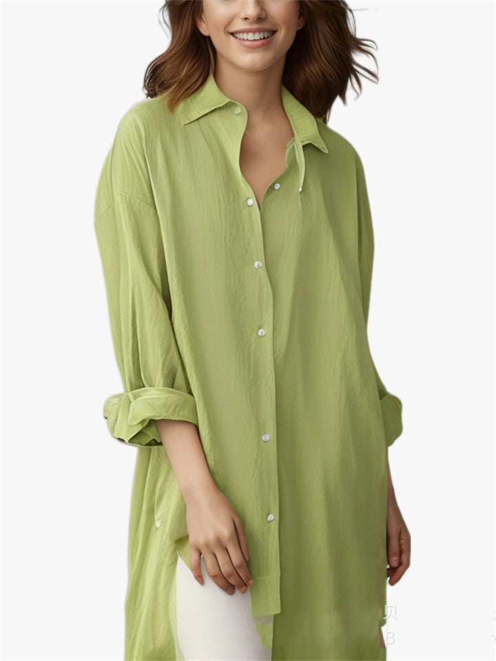Women's Casual Solid Color Single Breasted Lapel Cardigan Shirts