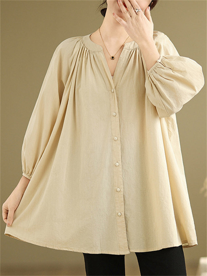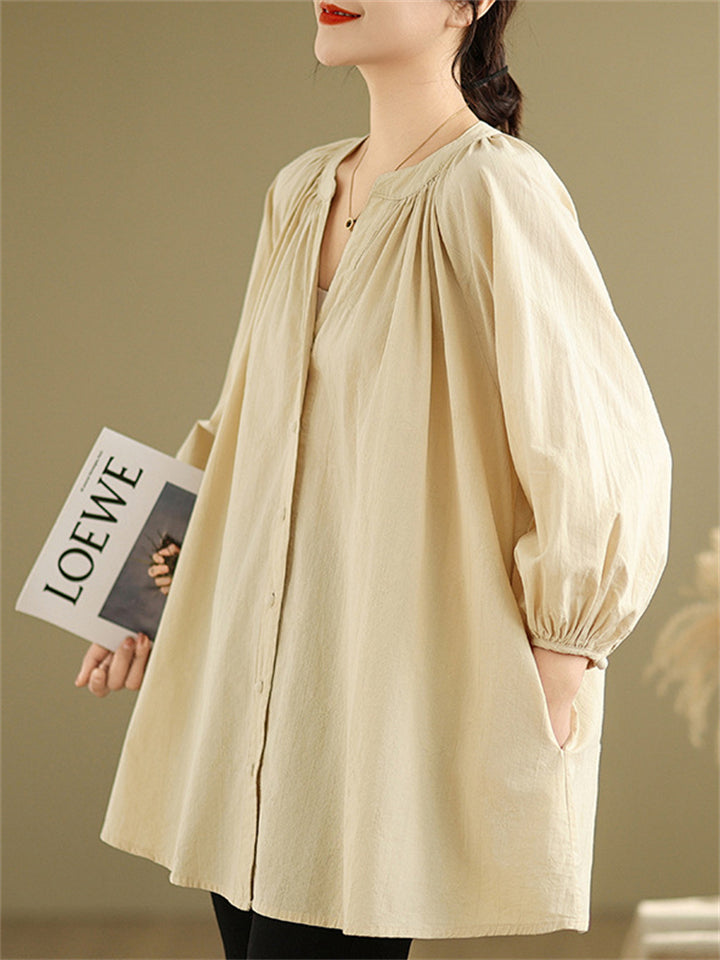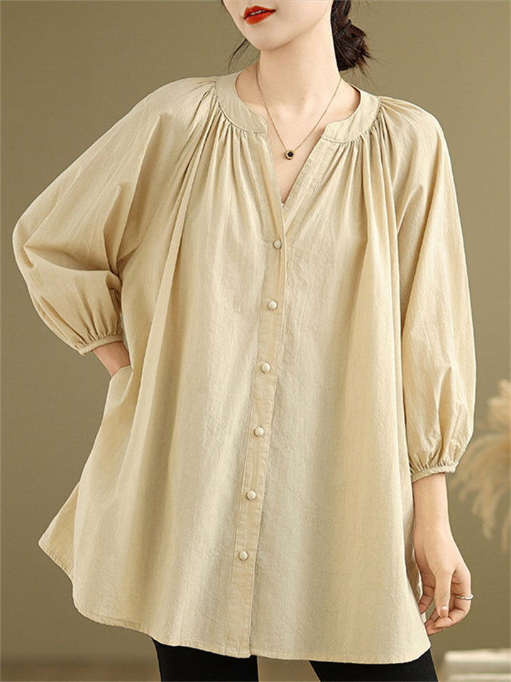 Women's Casual Solid Color 3/4 Sleeve Button Up Lapel Long Shirts