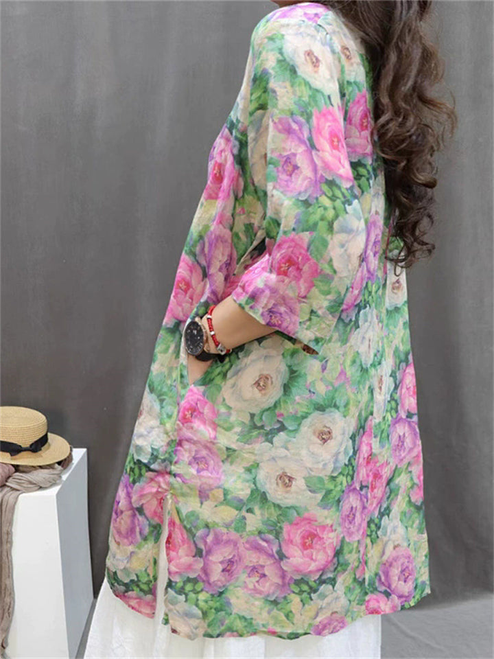 Ancient Chinese Style Floral Embroidery Linen Shirt for Women