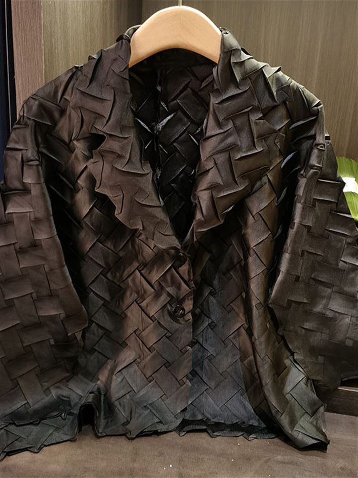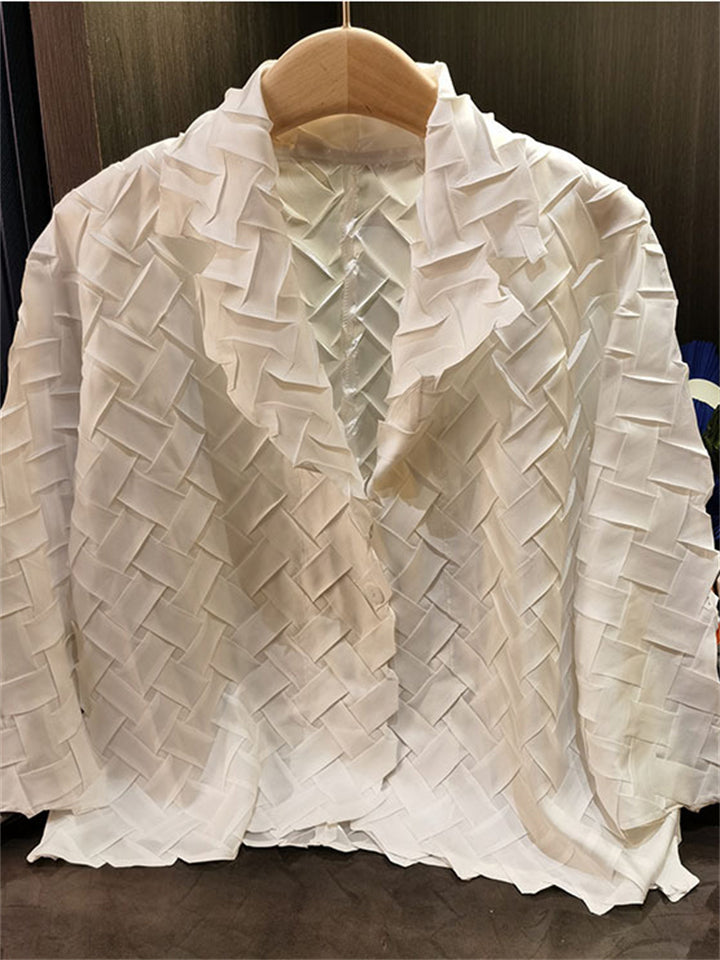 Women's Chic Woven Textured Wrinkles Single Breasted Tops
