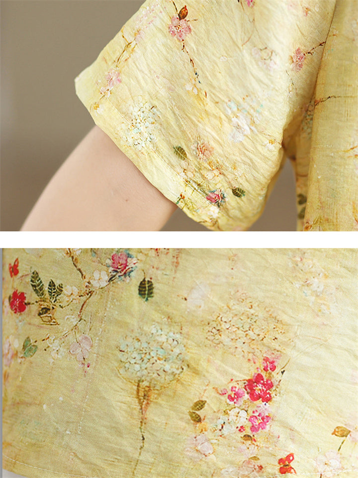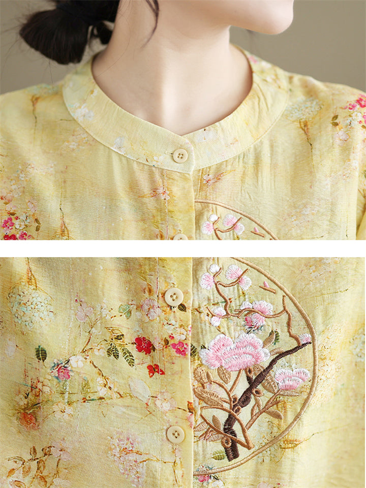 Ancient Chinese Style Floral Embroidery Linen Shirt for Women