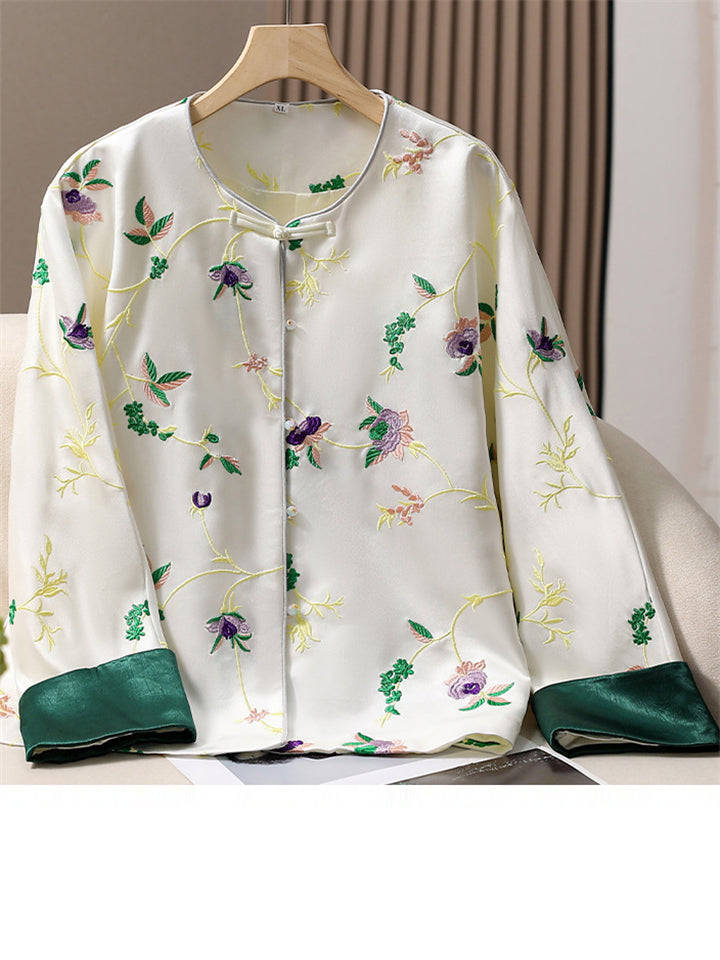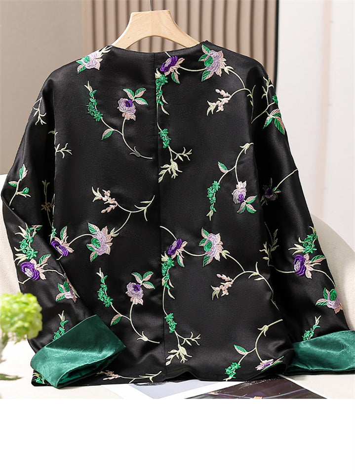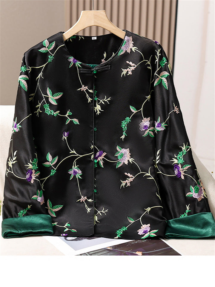 Women's Chinese Style Flowers Embroidery Long Sleeve Shirts
