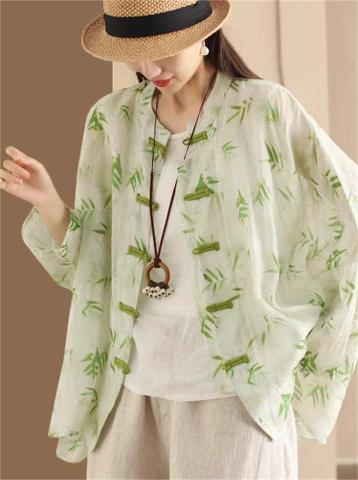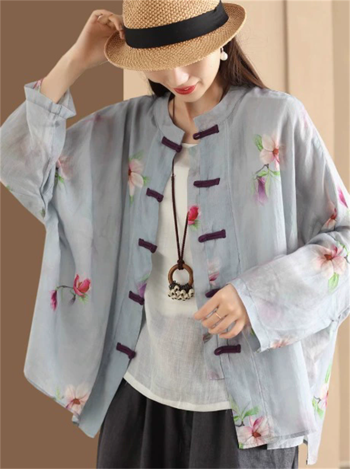 Women's Chinese Style Retro Printed Frog Button Cardigan Shirt