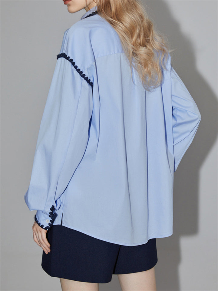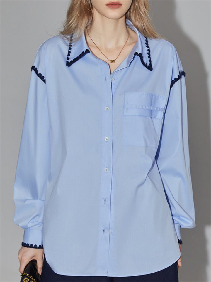 Women's Elegant Sky Blue Lapel Single-Breasted Shirt