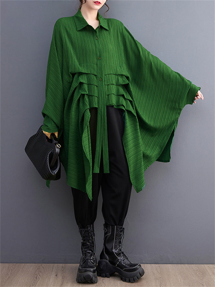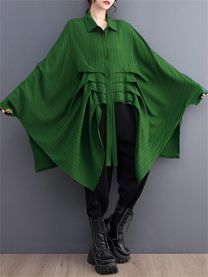Women's Fashion Batwing Sleeve Irregular Hem Oversized Shirt