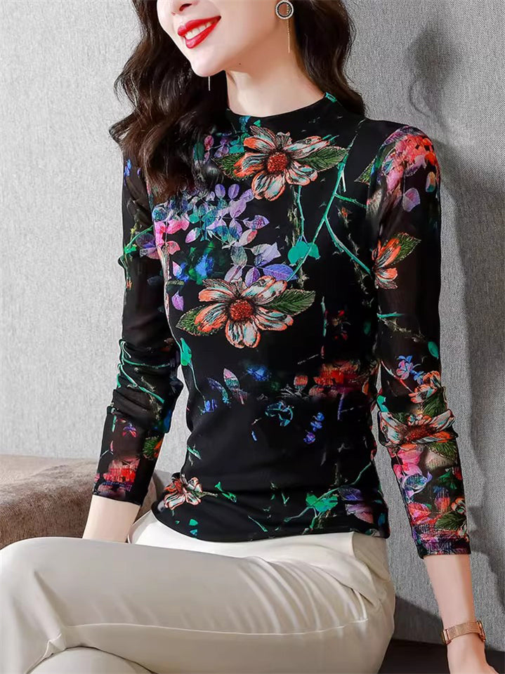 Women's Flowers Print Slim Long-sleeve Undershirt