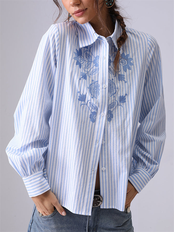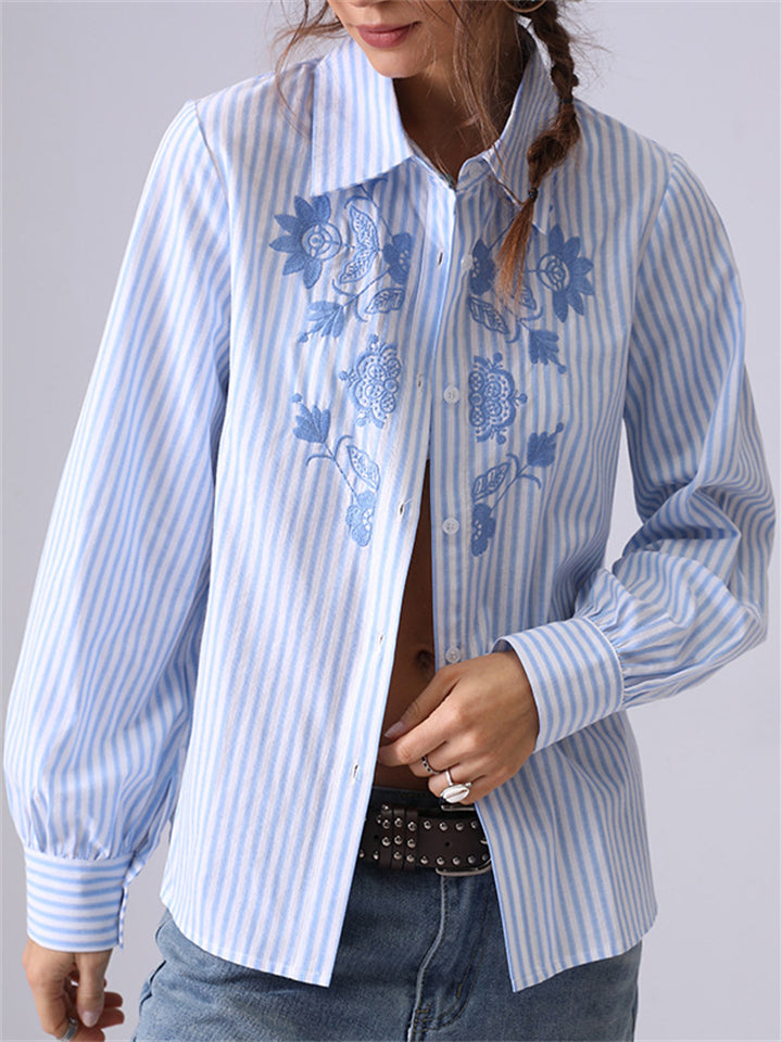 Women's Casual Retro Printed Long Sleeve Lapel Shirts