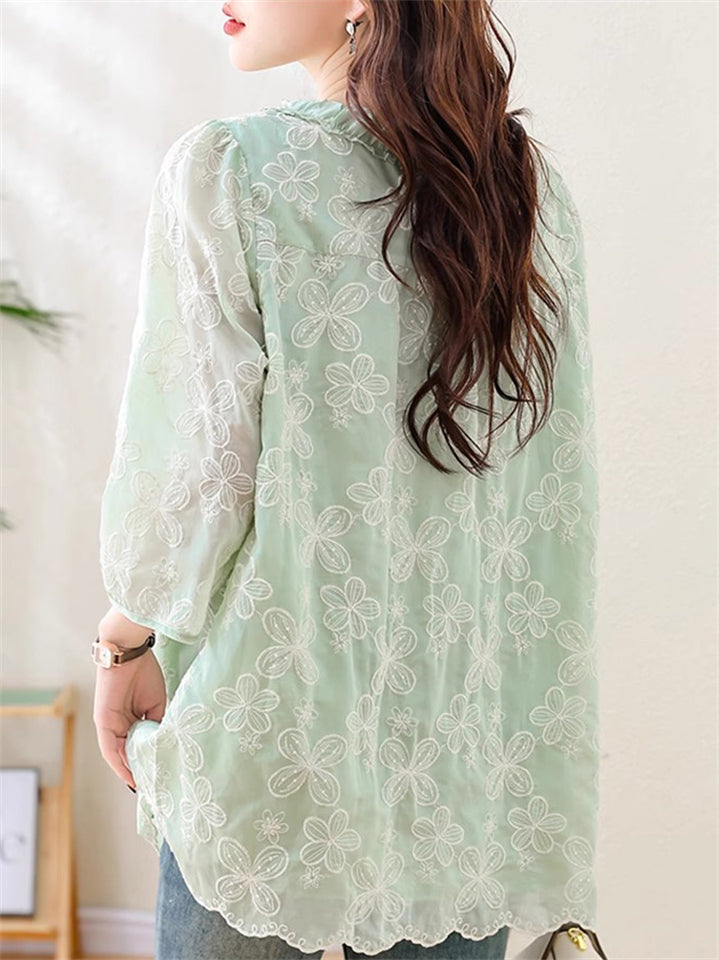 Ancient Chinese Style Floral Embroidery Linen Shirt for Women