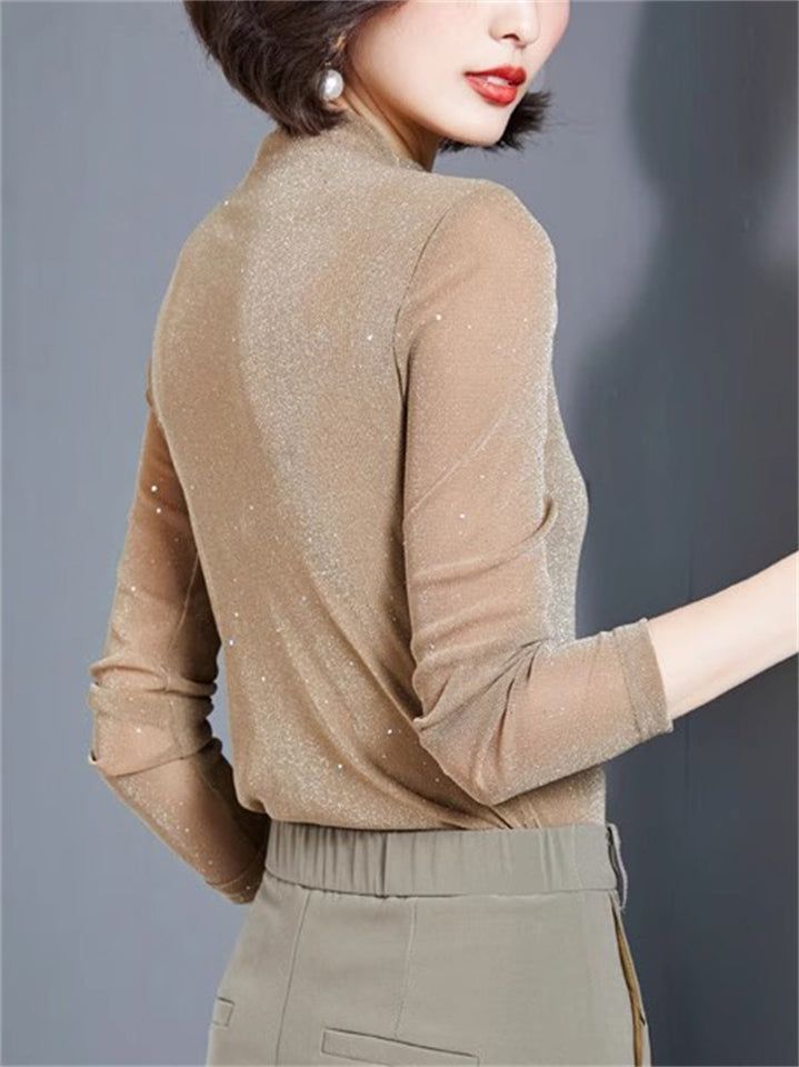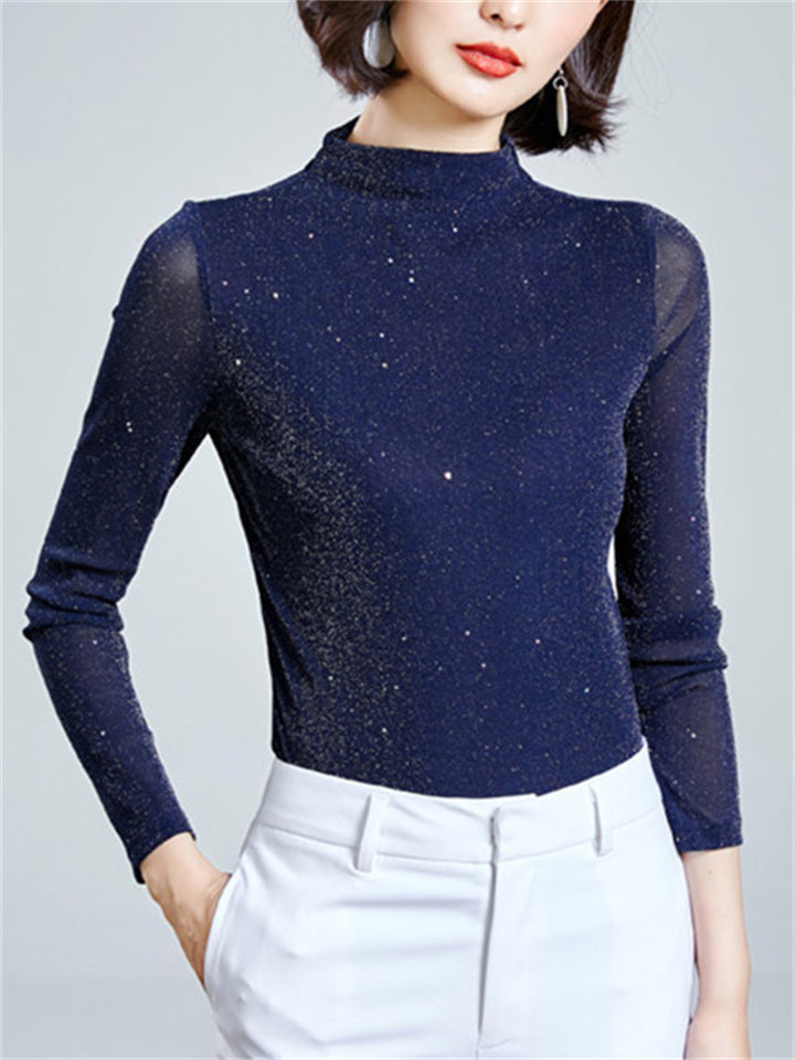 Women's High Neck Bling Solid Color Long-sleeve Undershirt