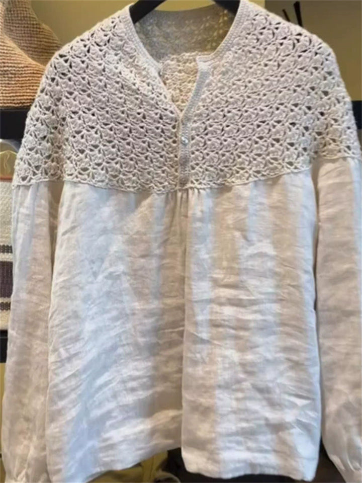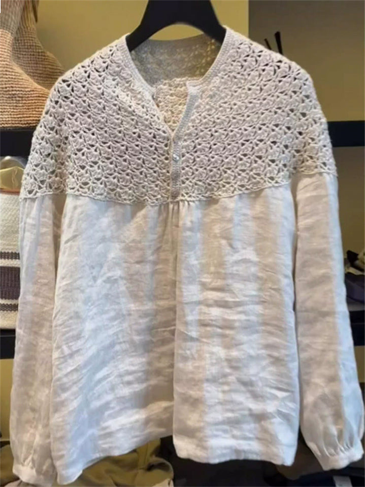 Women's Hollow Patchwork Solid Color Long Sleeve Shirts